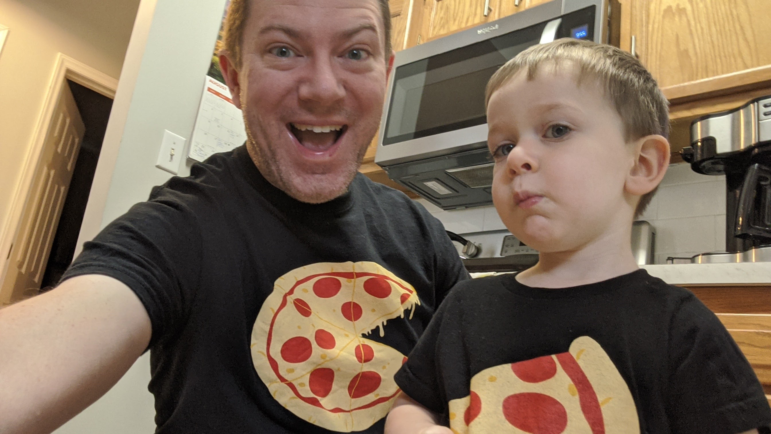 As Jaclyn felt it necessary to mention about fifty times before 10 AM, today was “Boys Day” for me and Miles, as Jaclyn was getting some much-needed alone time this morning. And what, exactly, did this mean for us? Well first, it meant we were coordinating our outfits: