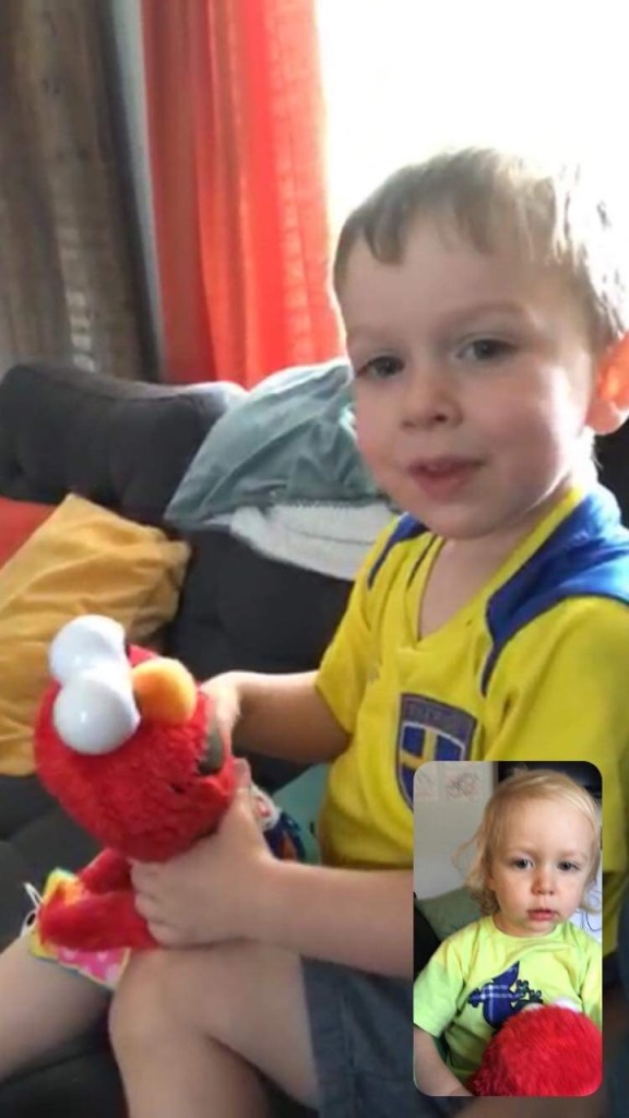 While we’re still largely keeping Miles’s time outside the house limited to daycare and playing in the yard, we’re doing our best to make sure he stays in touch with his friends elsewhere in the world. Yesterday, Miles chatted with his Canadian pen pal, Eamon.