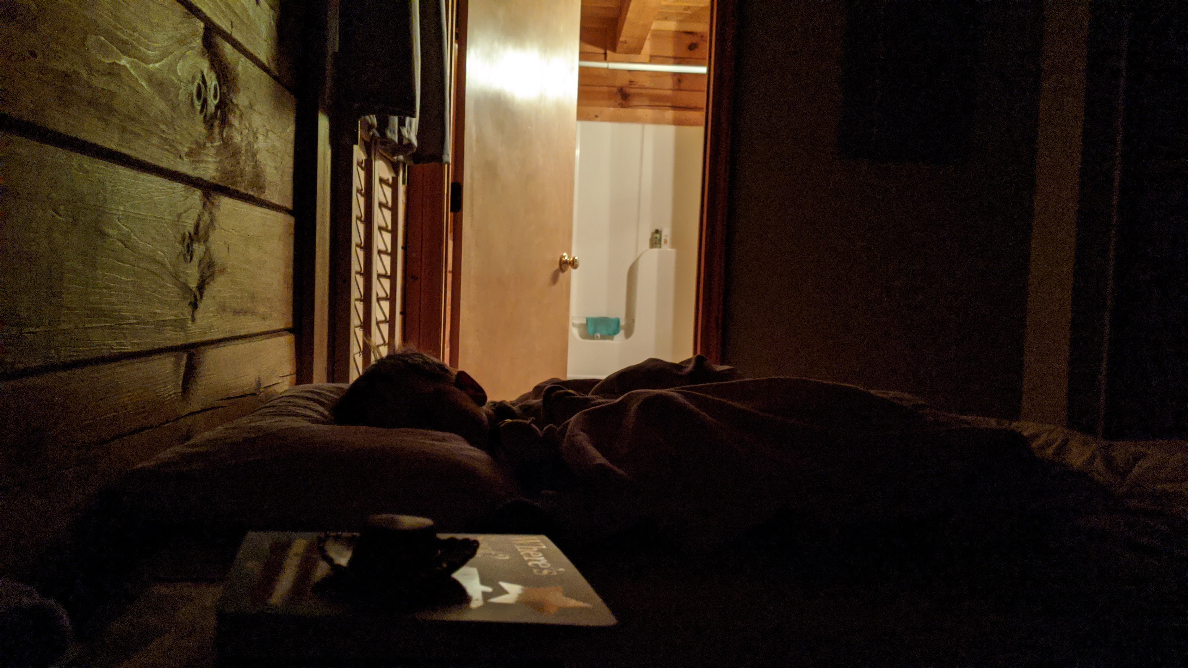 As we were settling in at our weekend residence yesterday, Jaclyn very quickly and decisively let me know I’d be sharing a room with Miles. As such, this was the last thing I saw last night: