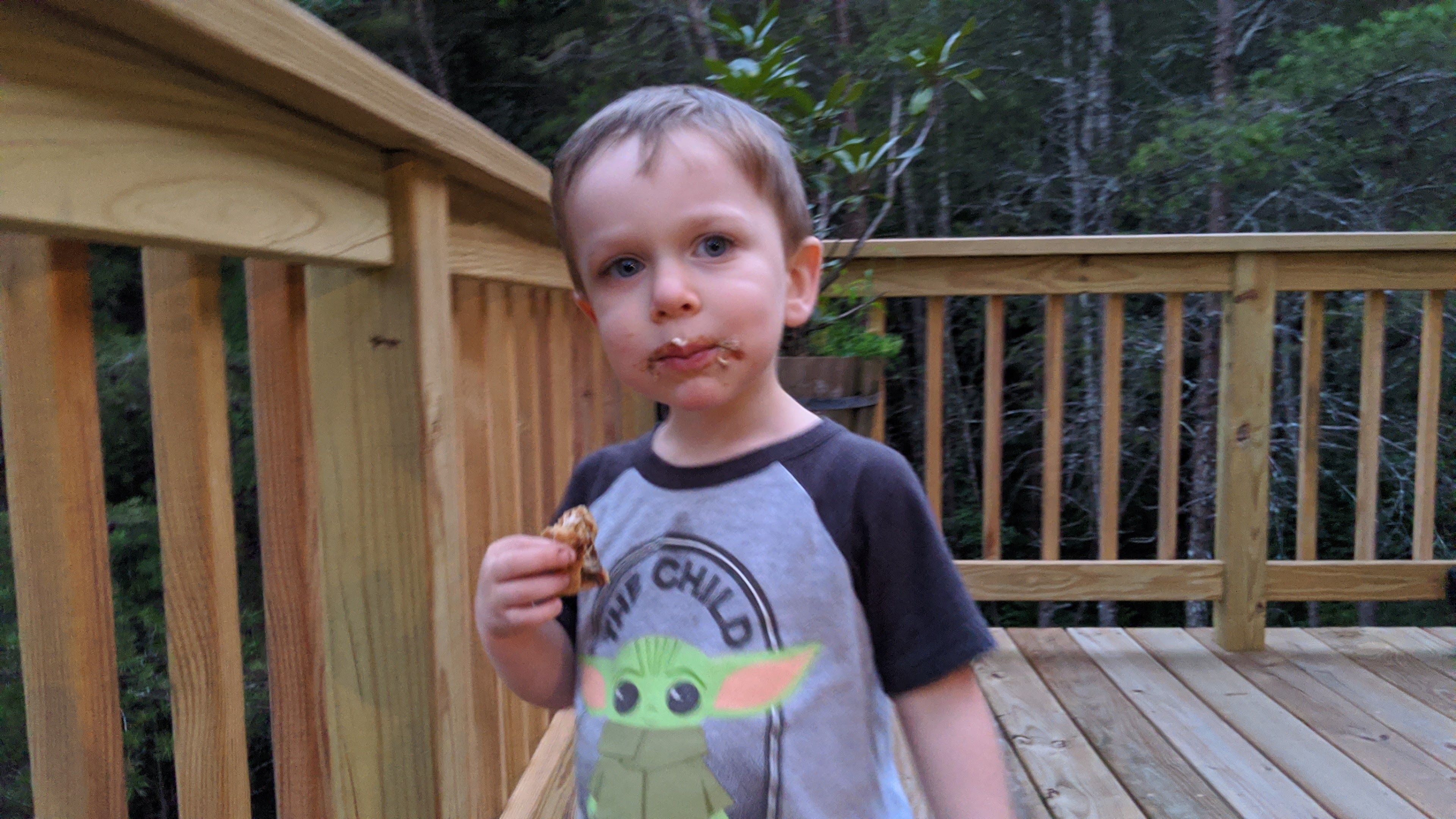 While I’m sure fishing will remain a highlight of the weekend for Miles, this evening delivered something sure to prove even more memorable, as he tried s’mores for the first time.