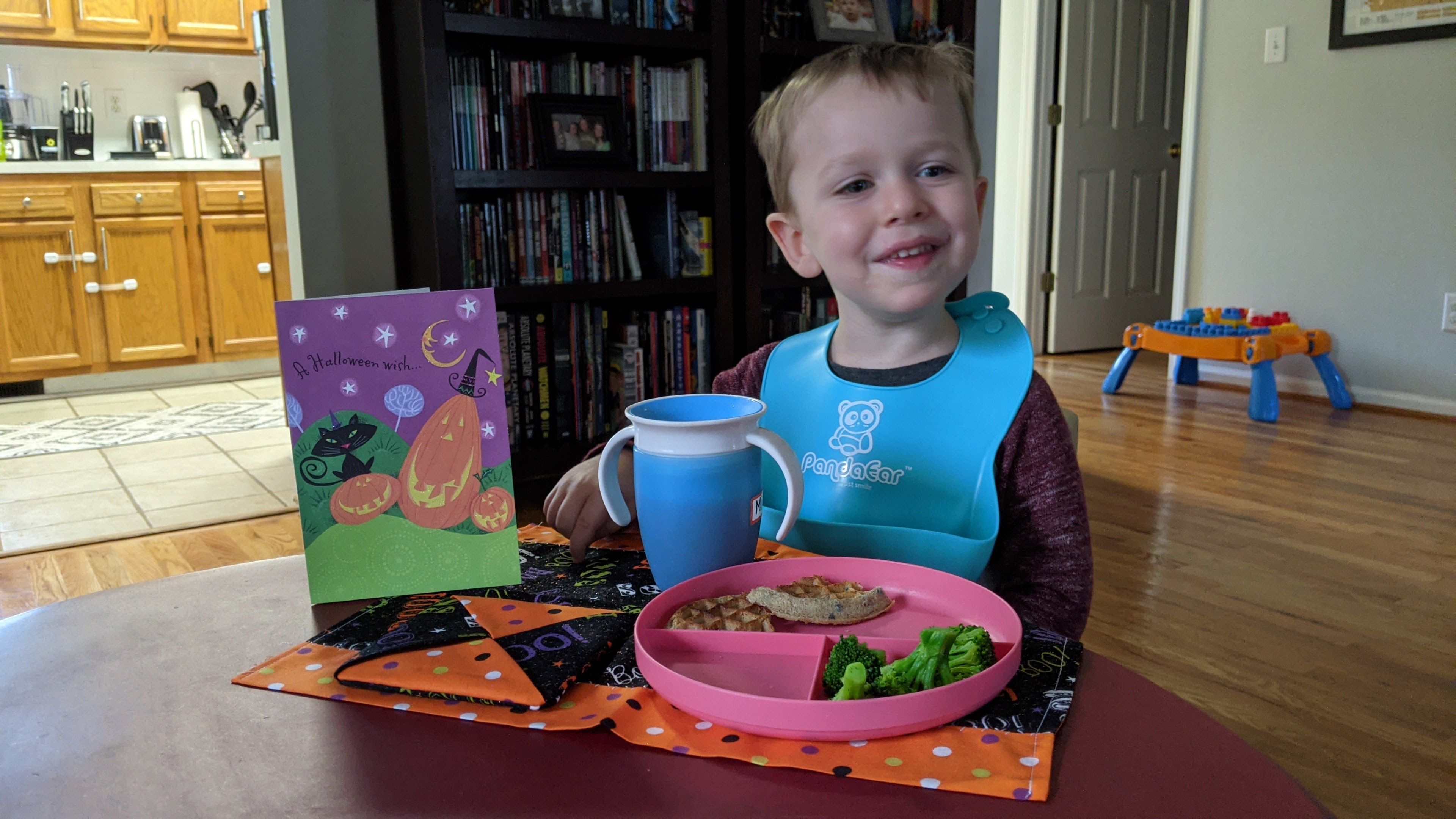 Two things Miles loves: packages coming in the mail and Halloween goodies. Lucky duck has relatives who are willing to satisfy both!