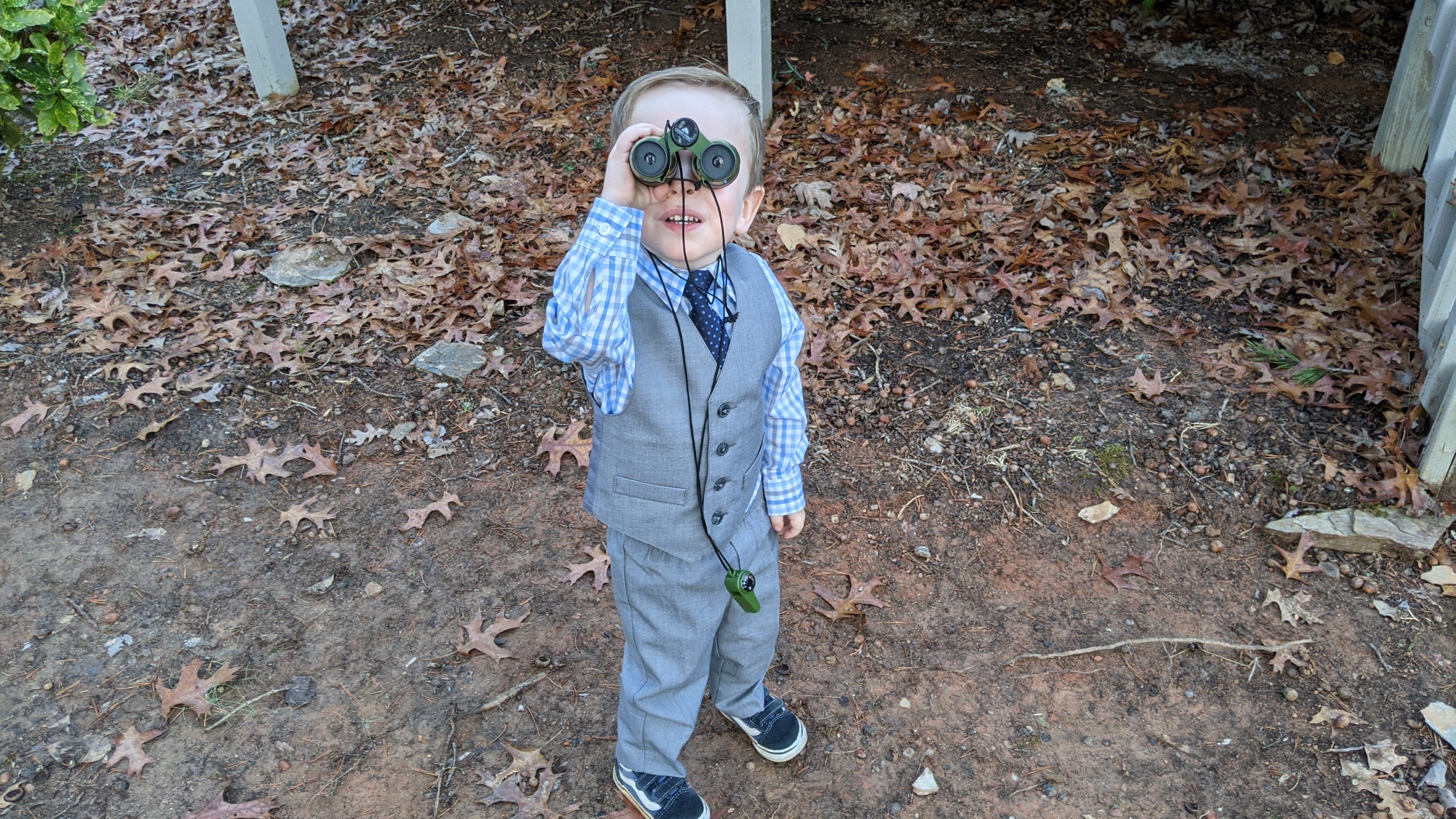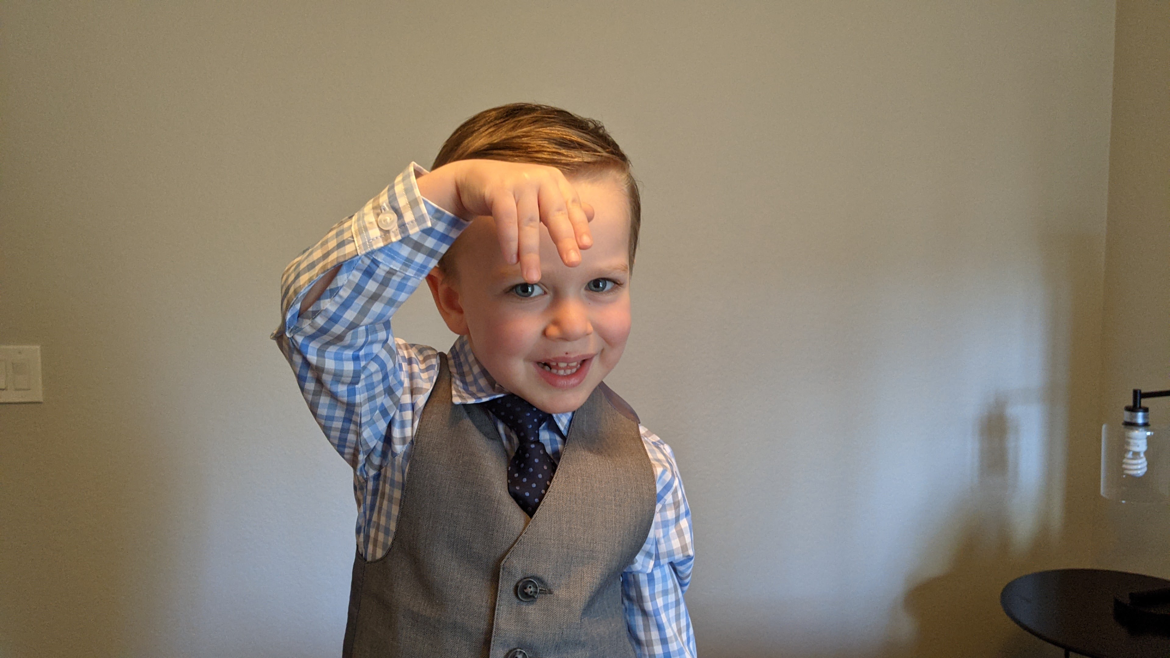 Naturally, when it came time to eat, Miles was the best dressed person at the table.