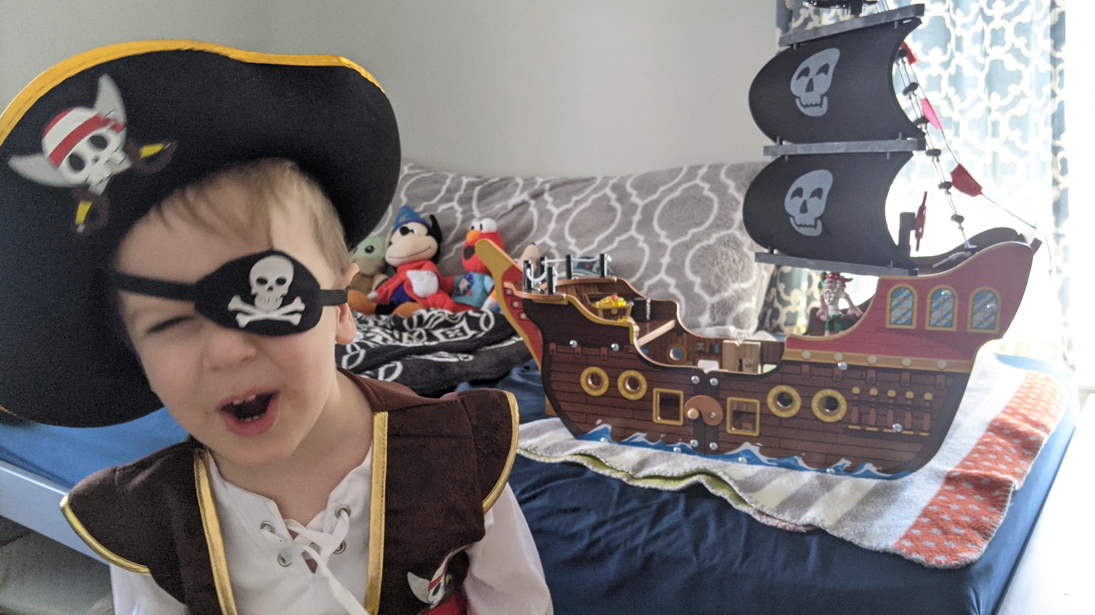 Recovering as I was from the night before, this morning was a late start for me. Miles did eventually beckon me to get out of bed. “Wake up Daddy!” Then, as soon as I stood up, “Build my pirate ship and choo-choo train!”