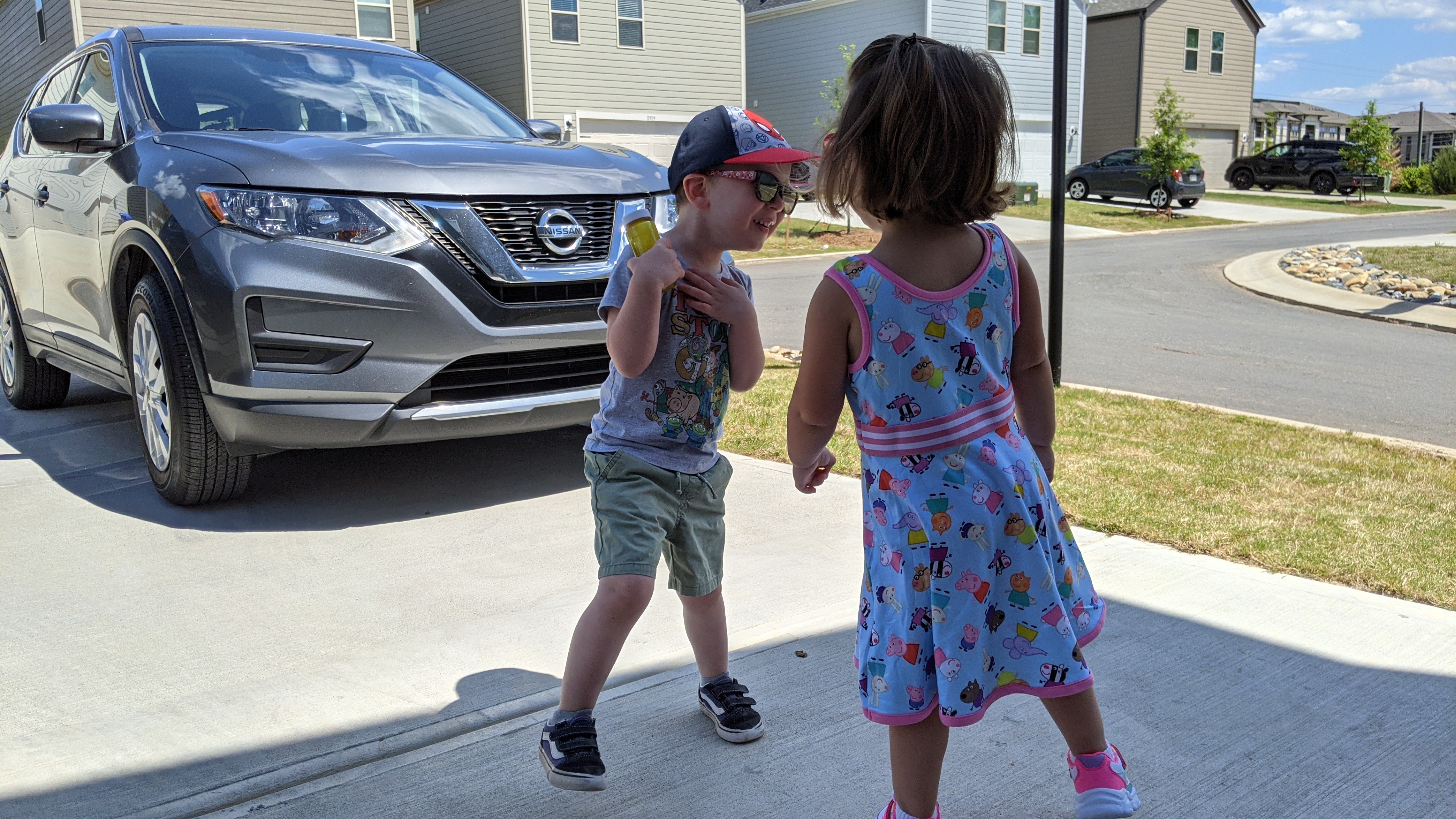 He came around after a while though, letting a very patient Audrey play with his toys and enthusiastically introducing her to the neighborhood playground.