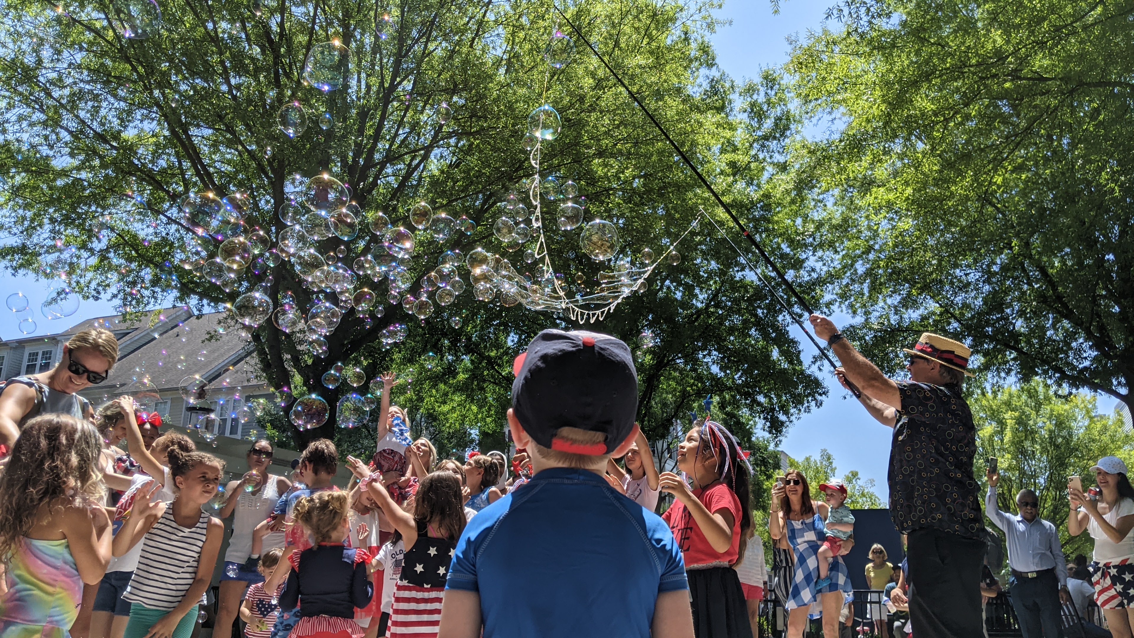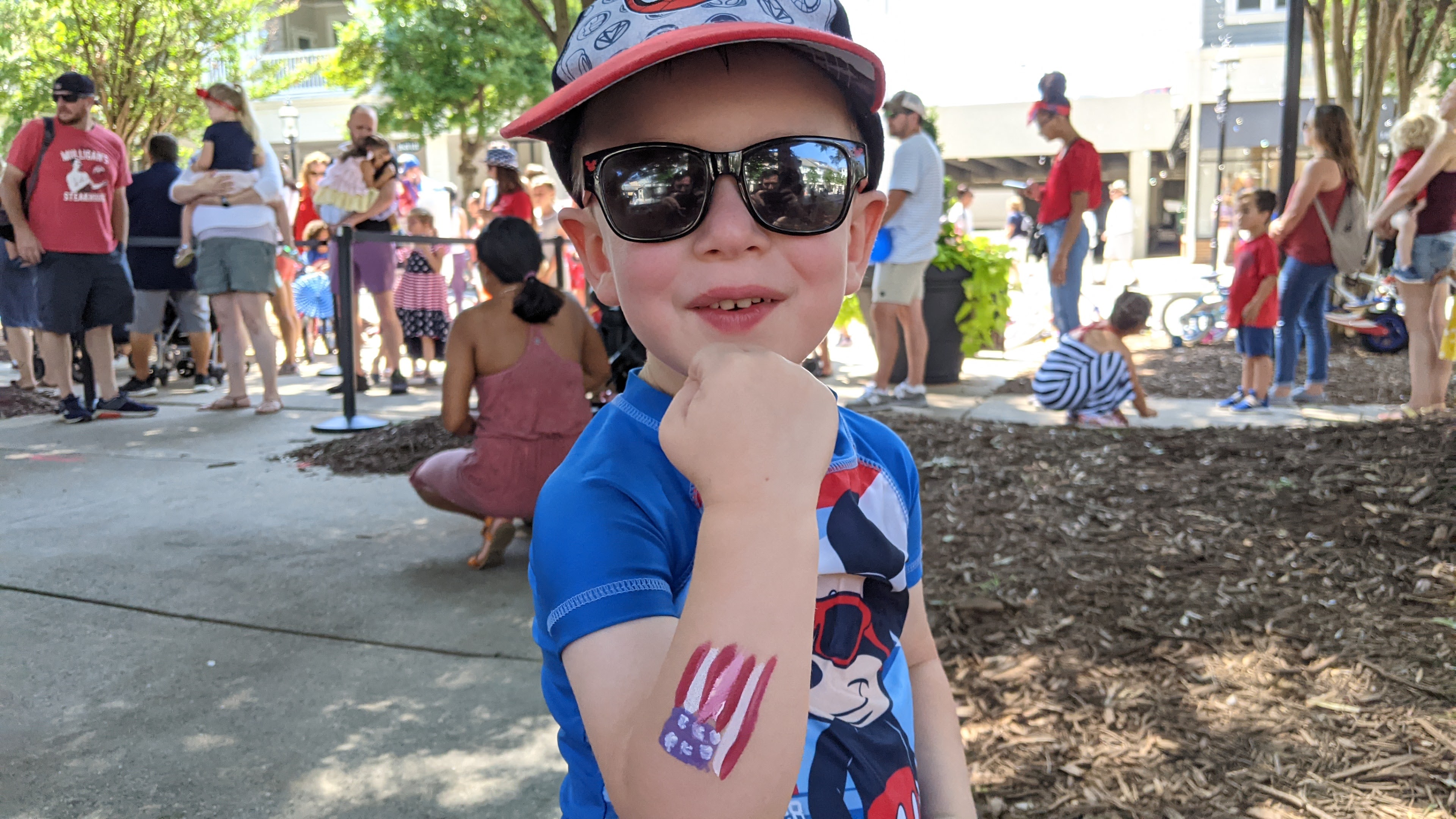 Today, we celebrated the Fourth of July with a visit to Birkdale Village, where a holiday festival gave Miles a chance to truly demonstrate his patriotism.