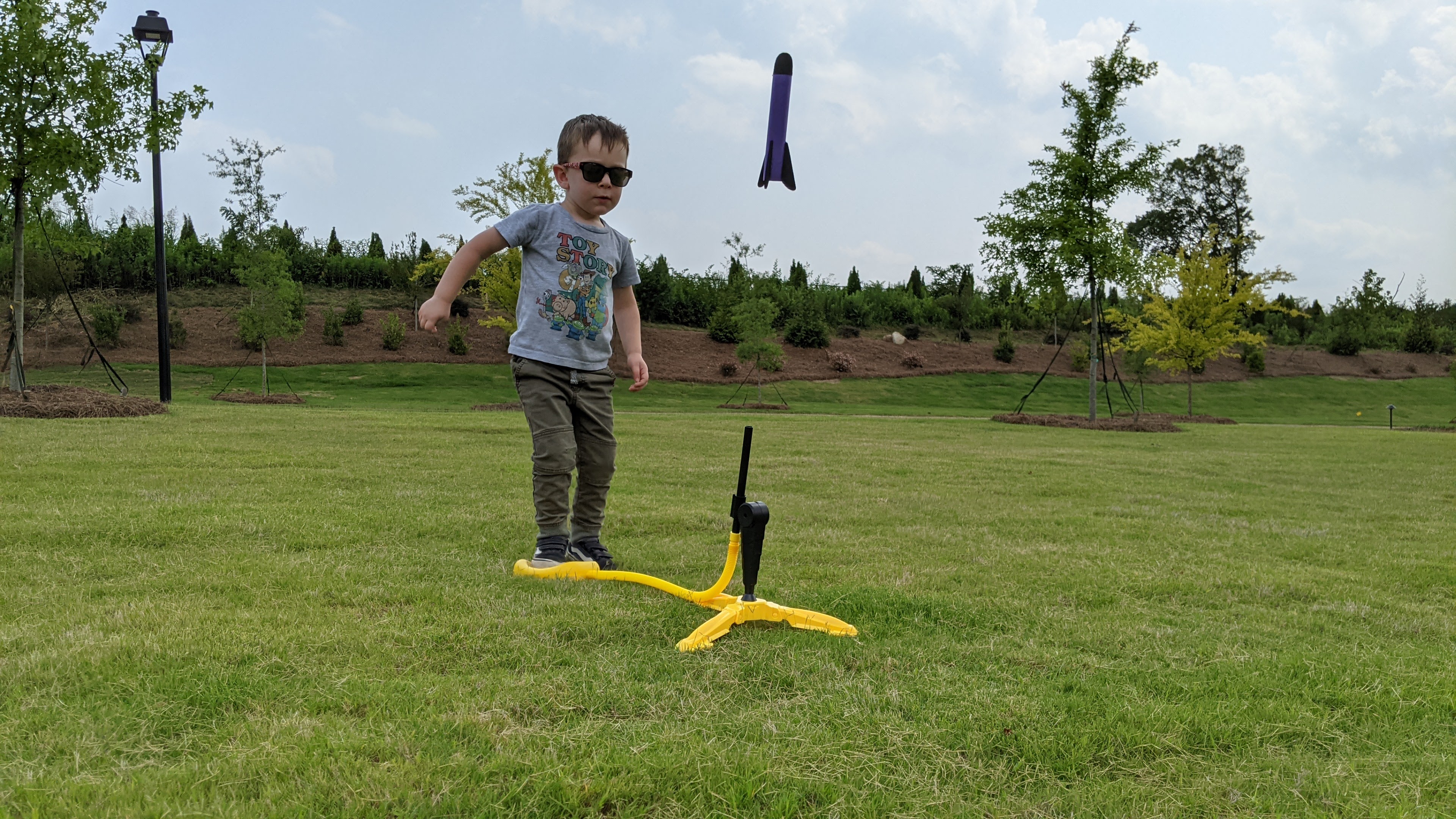 Taking a cue from Jeff Bezos, Miles and I headed to the park today to attempt our own suborbital rocket launch.