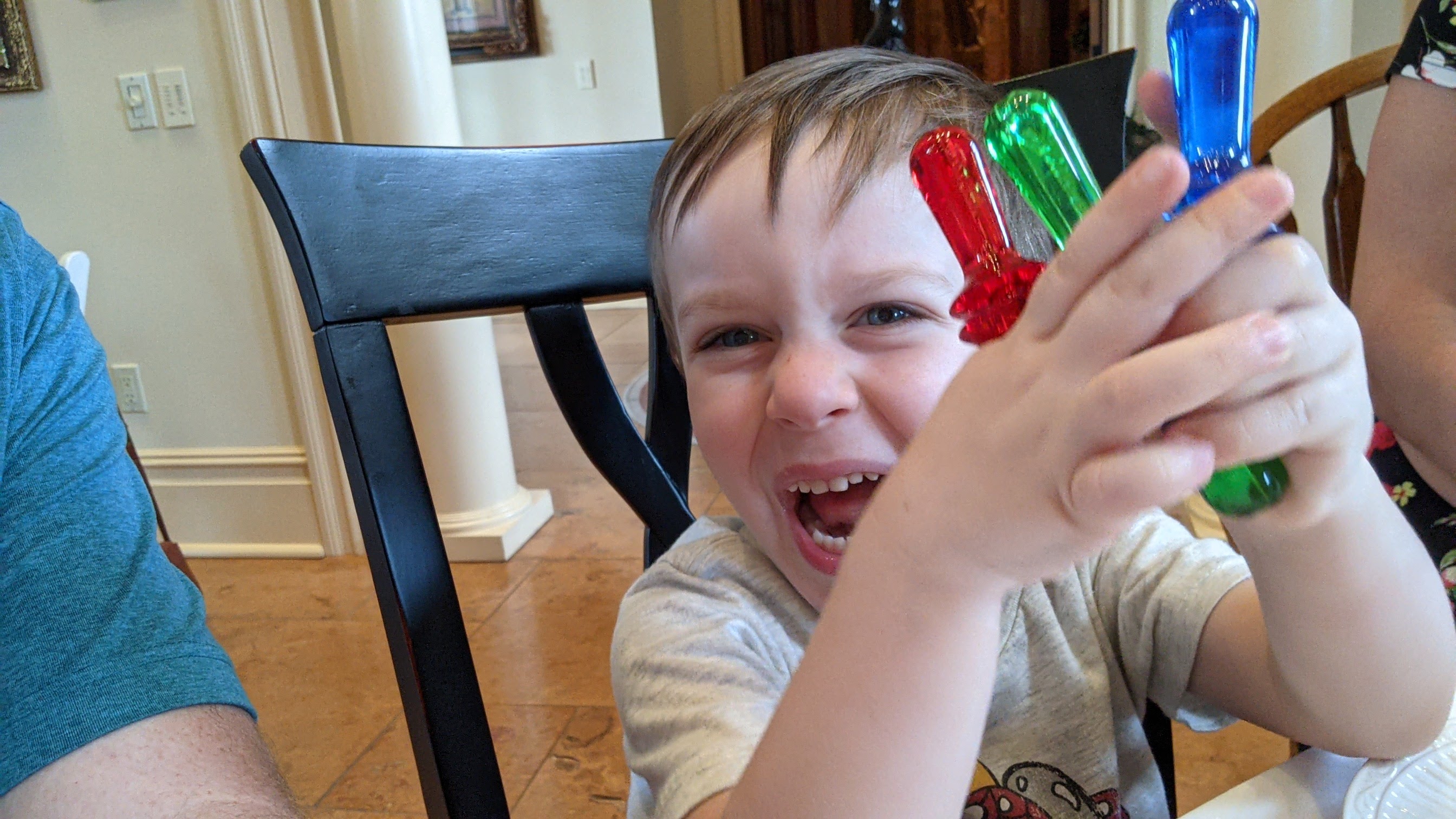 Today was the event that compelled us to make the trip to New Jersey this week — the graduation celebration in honor of Jaclyn’s cousins, who recently finished their degree programs. It was a time for revelry, conversation, and exceptional food. Or, in Miles’s case, collecting all the corn cob holders necessary for a complete set of PJ Masks colors.