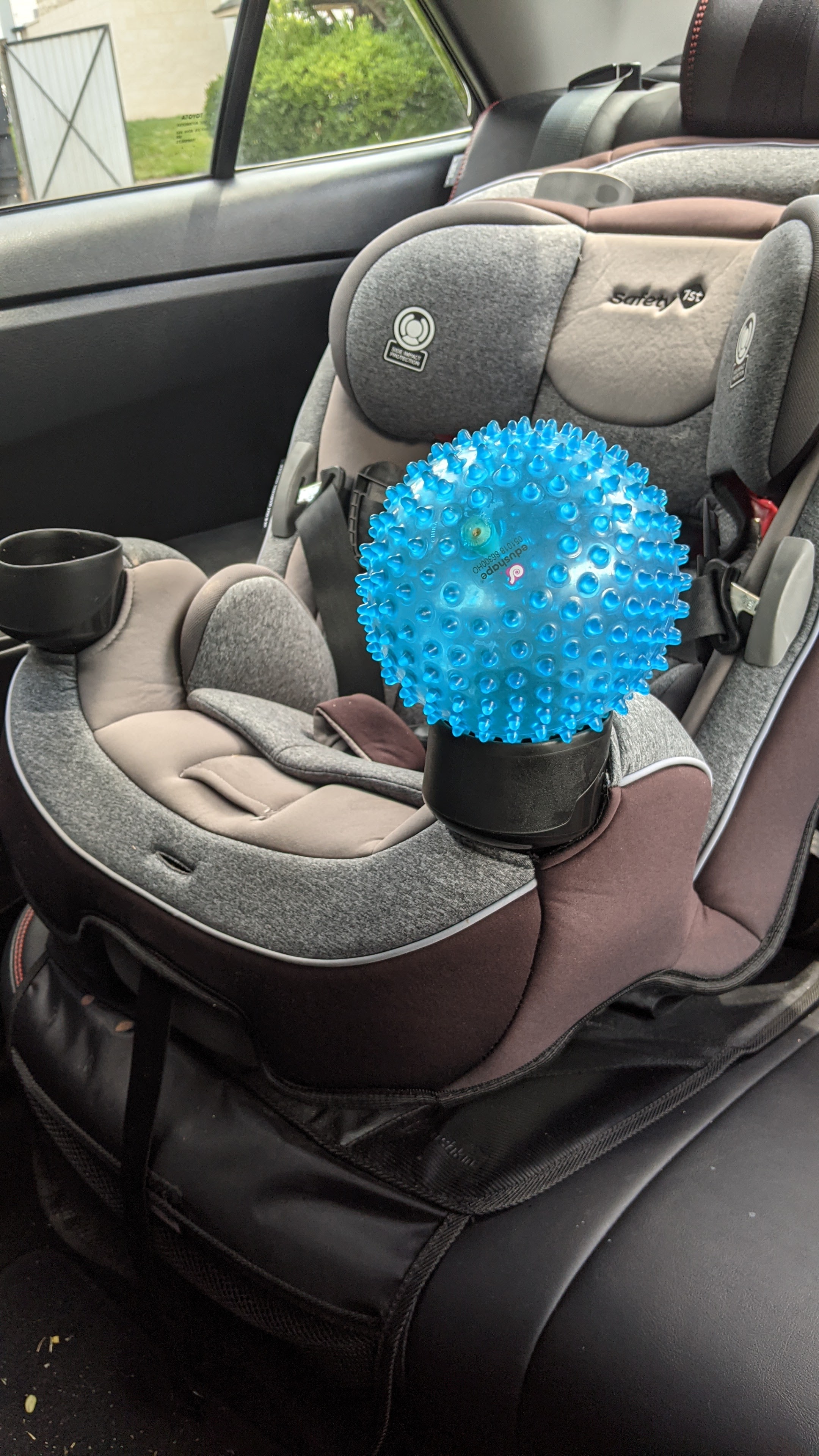 Miles played around in the backseat for a moment before bounding out and walking up to daycare this morning, and it wasn’t until I got to work that I found out what he had been up to, somehow still sitting right where he left it: