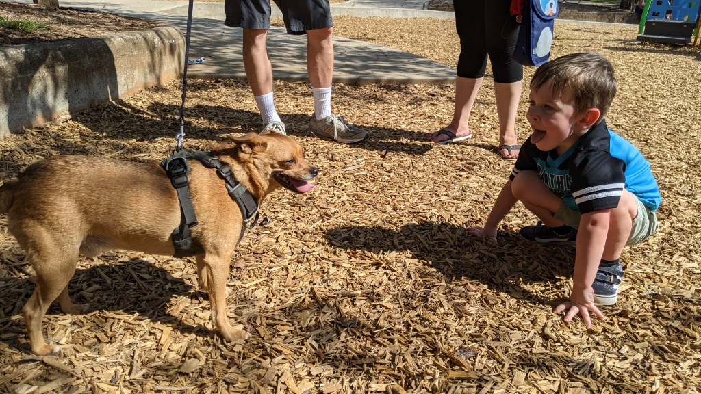 After yesterday’s high-stress adventure, we tried to take things a little easier today with a trip to the park. Never one to relax for too long, Miles took a page out of his grandfather’s playbook and went squirrel hunting.