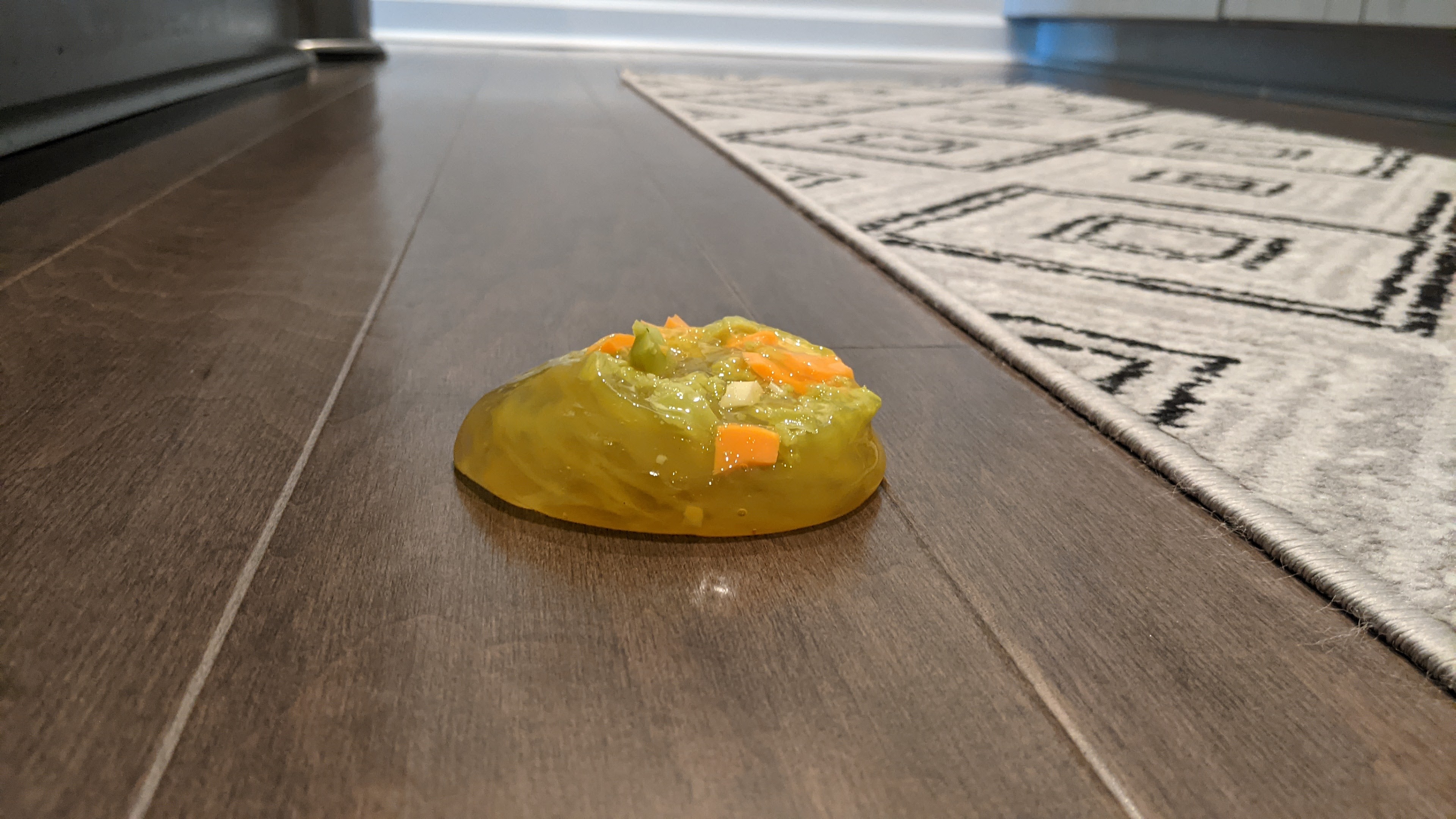 I brought some home this weekend and bided my time, looking for the perfect moment to enact my plan — wait until Jaclyn was gone and Miles was preoccupied, dump this vile substance on the floor somewhere, then wait for Jaclyn to discover it and blame Miles. This morning, when Jaclyn left to pick up breakfast and Miles was watching Paw Patrol, I found my chance.