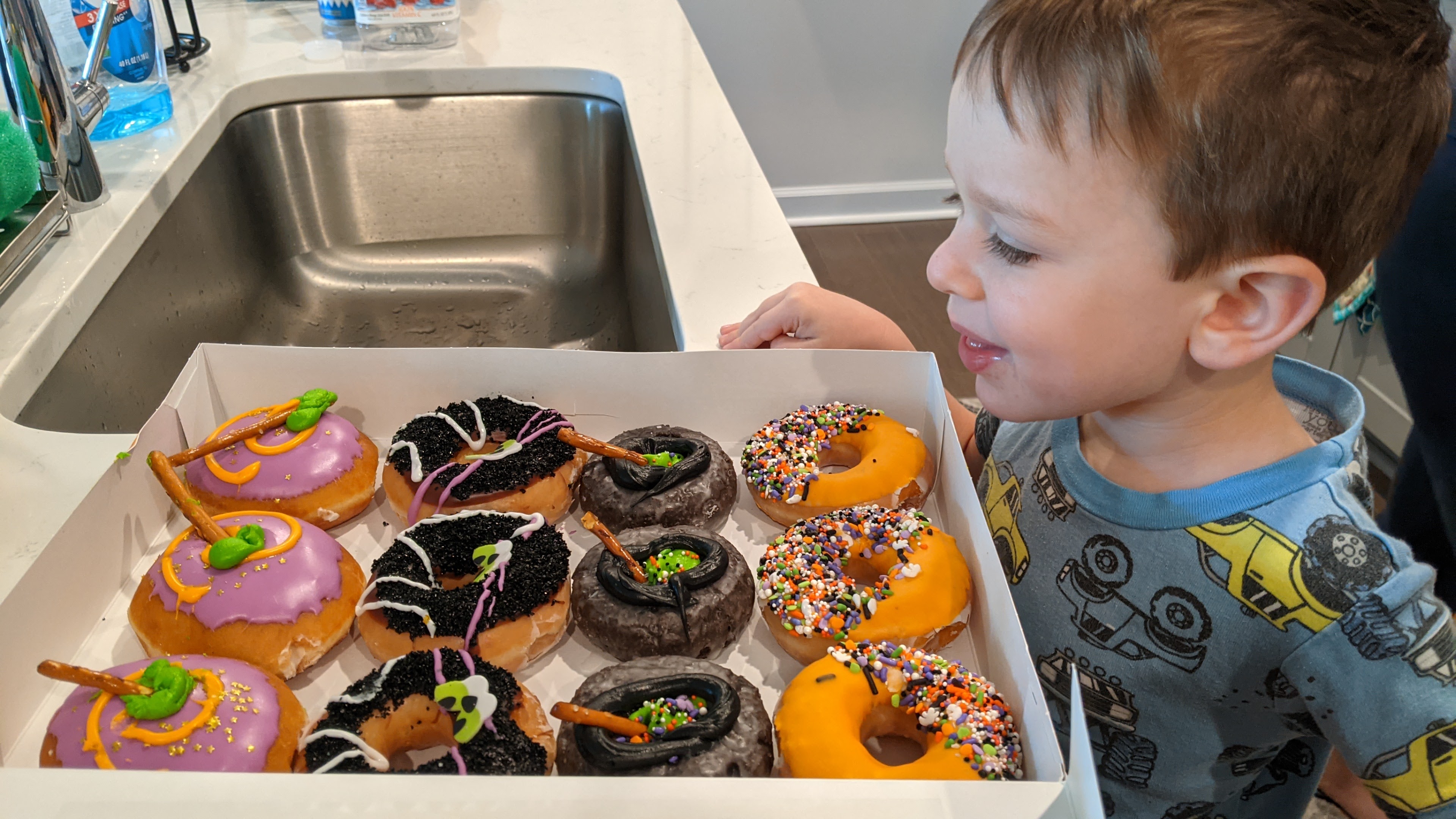 The day Miles has been waiting months for finally arrived today and there was no question that he was going to spend the whole day celebrating. Jaclyn picked up a dozen themed donuts to get the day started.
