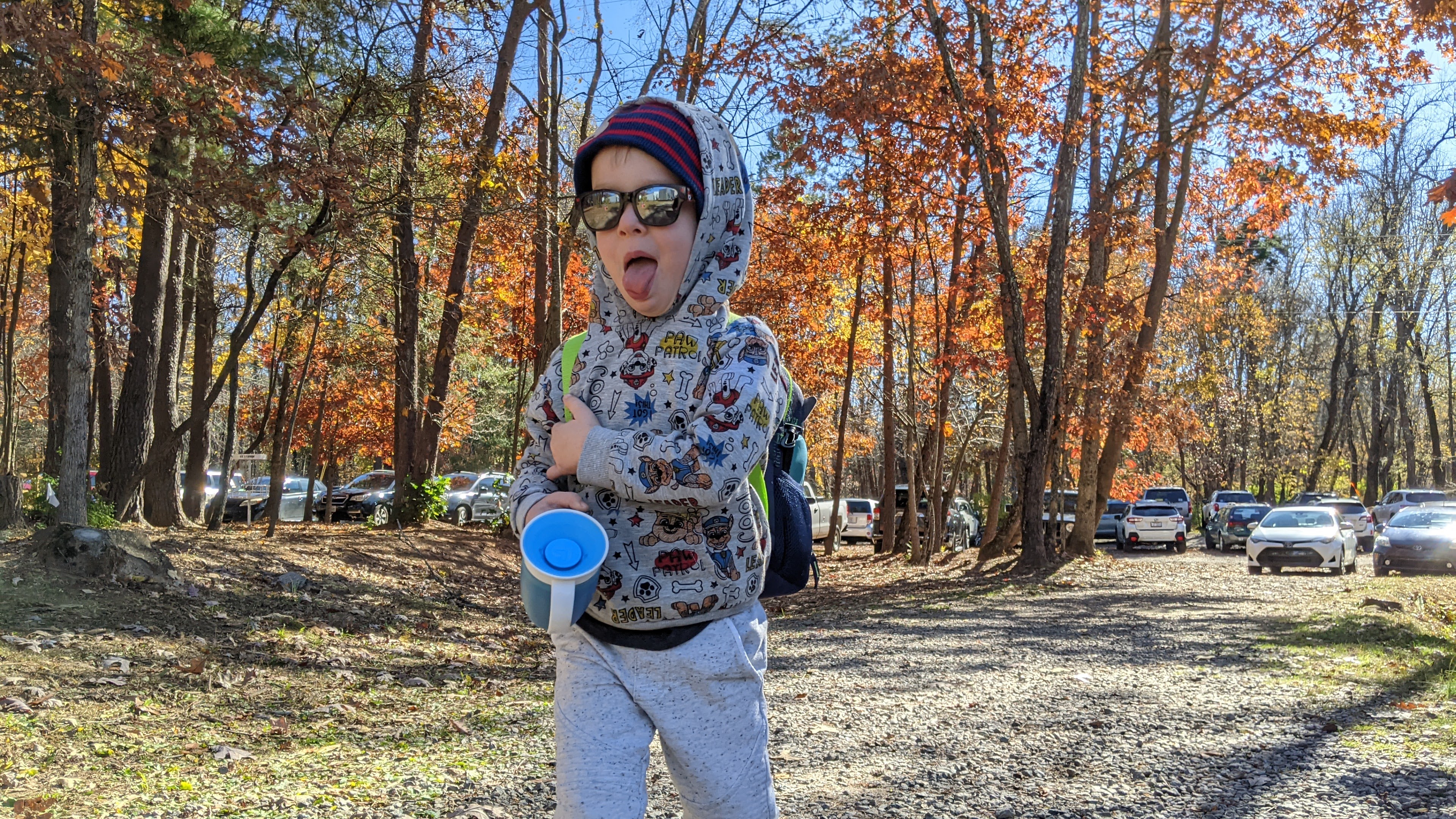 We headed west today for a day trip to Asheville to see some fall colors (and okay, okay…to drink some seasonal beverages). After a couple hours in the car, Miles emerged at Highland Brewing ready for action.