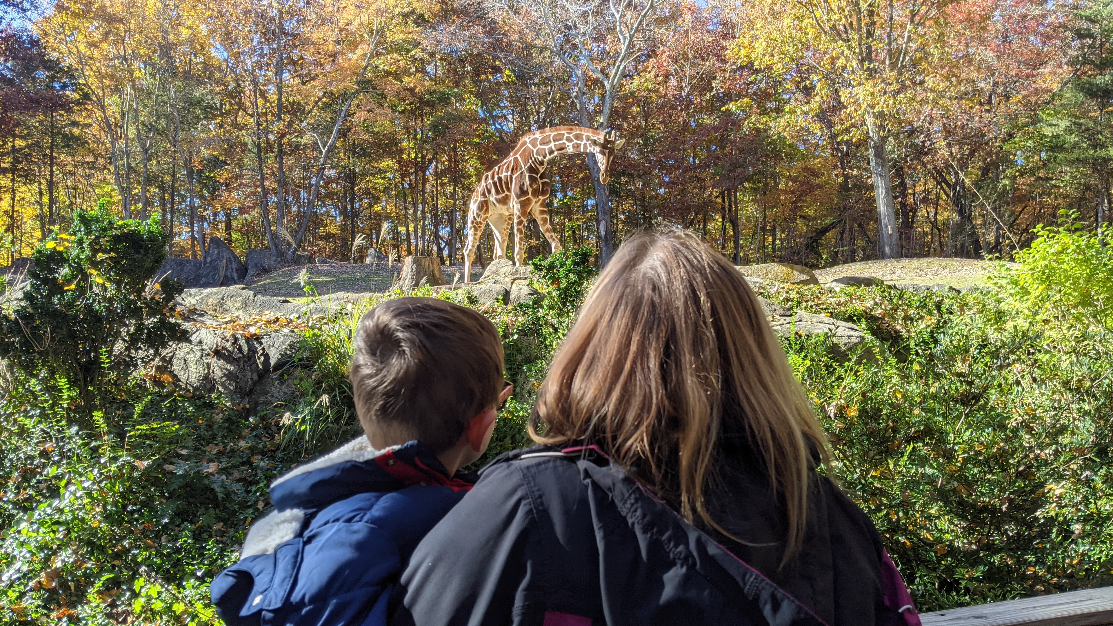 The zoo is split into a “North America” section and an “Africa” section, and while we started in North America, Miles was of a singular mind all day — essentially, “If it ain’t a giraffe, I ain’t here for it.” He whizzed past puffins and polar bears, made a brief pause at the gorillas (they were sitting really close to the glass), and did spend a fair amount of time on a playground while we waited for lunch.