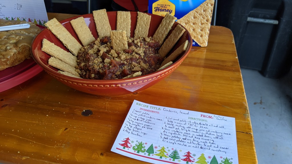 After a year lost to the pandemic, our legendary annual Dipsgiving event roared back today, moving out to the garage but still giving our friends a chance to showcase their culinary masterworks. As in years past, it didn’t disappoint.
