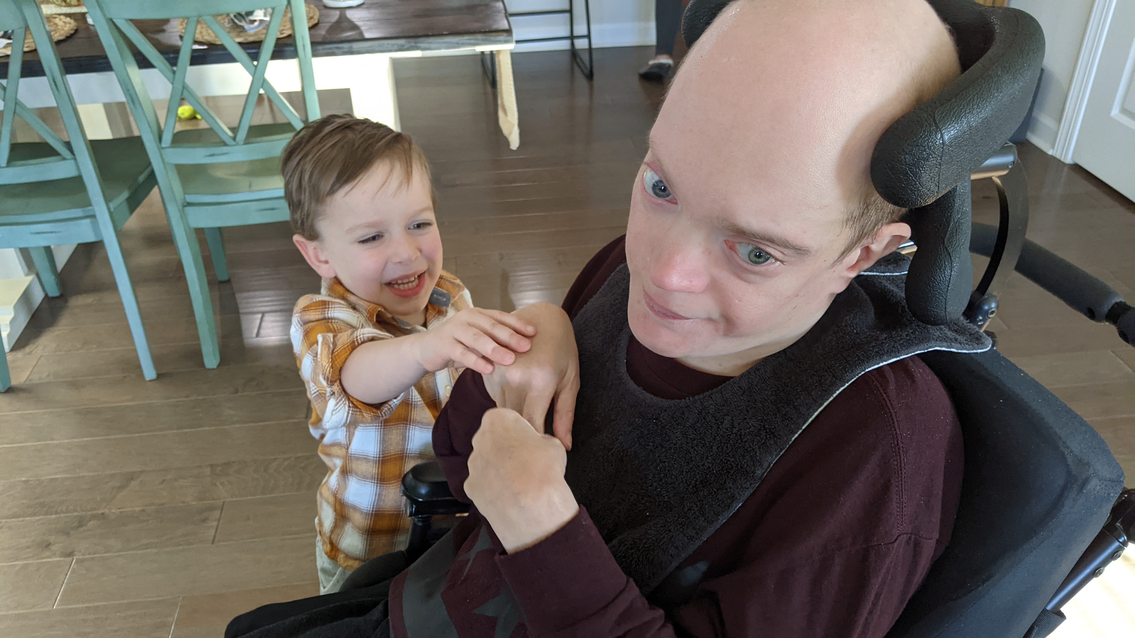 After dinner, not done in by tryptophan, Miles had enough energy to try wrestling his grandmother.