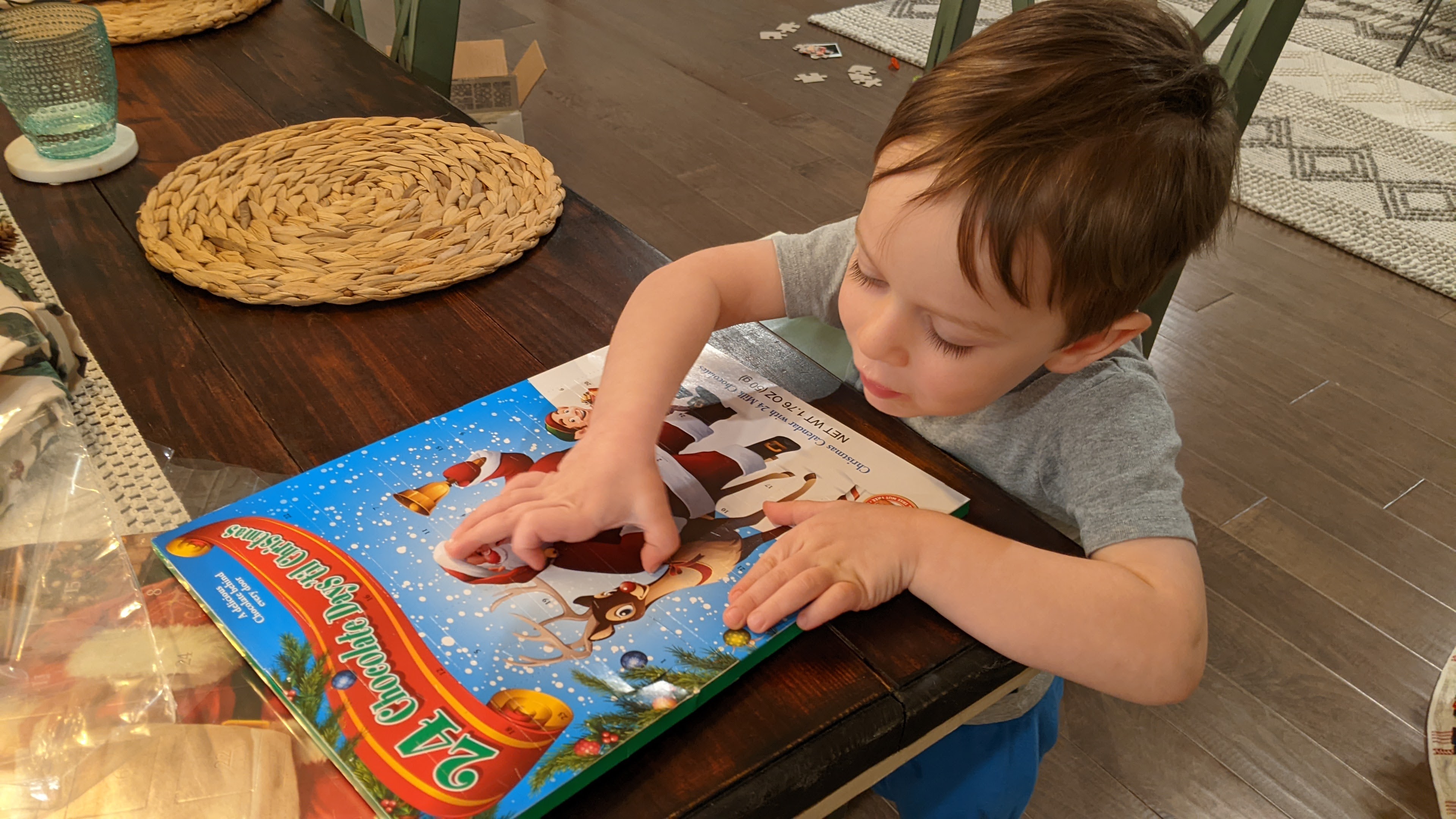 Now that Miles is old enough to vaguely discern the passage of time and recognize numbers, we decided to introduce him to Advent Calendars this holiday season. He had plenty of fun just hunting for the appropriate number, but once he found out there was candy inside? He squealed in a way I’ve never heard before, as though he had just cracked the meaning of existence and felt a rush of unbridled delight.