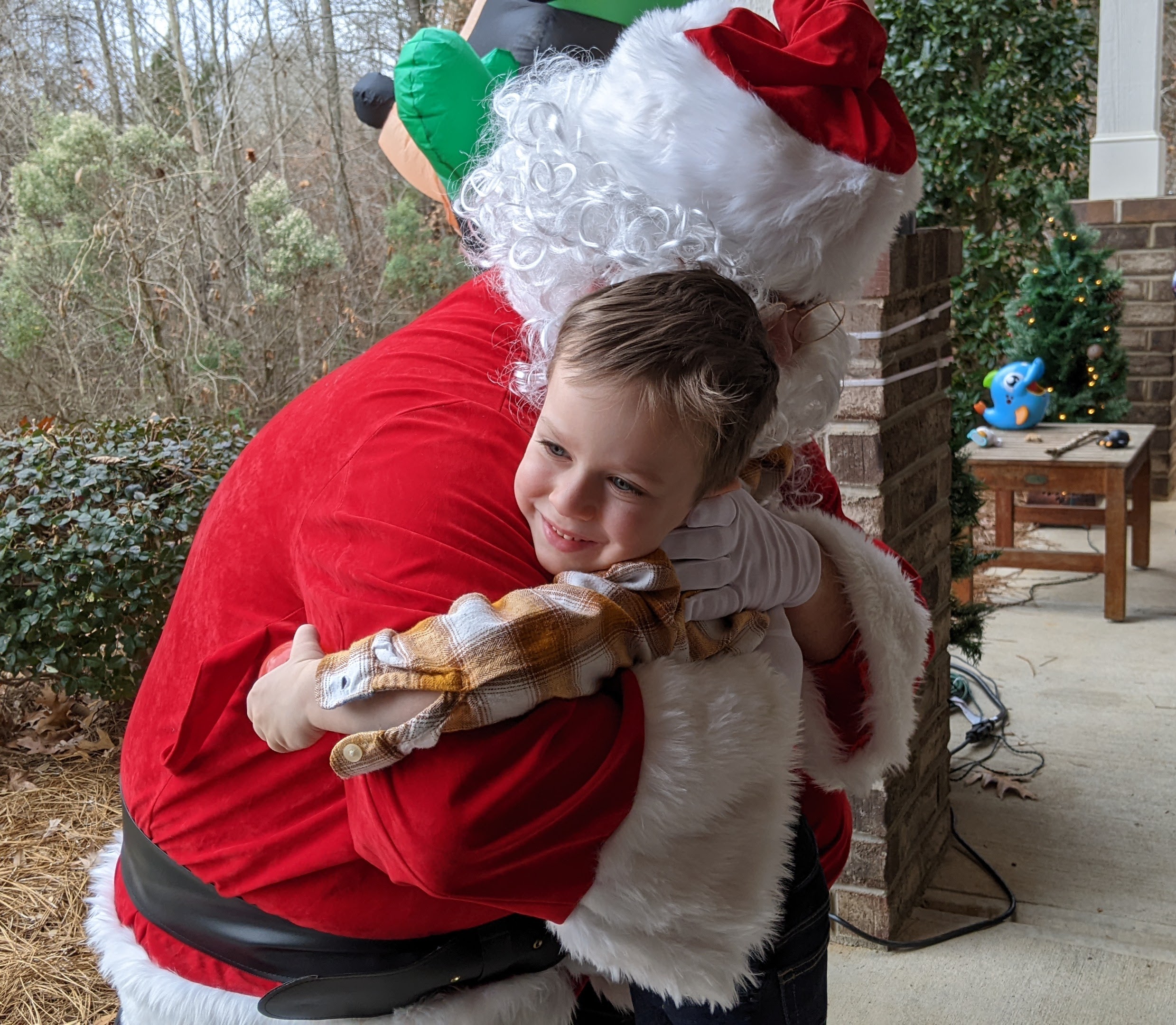 Fortunately, I was able to remind him of the big-ticket items he wanted and he avoided saying anything too outlandish (ie, anything that couldn’t be acquired by Thursday). Miles gave Santa a big hug before the jolly old elf had to be on his way, which oddly enough happened right before Jeff got home from work… Weird.