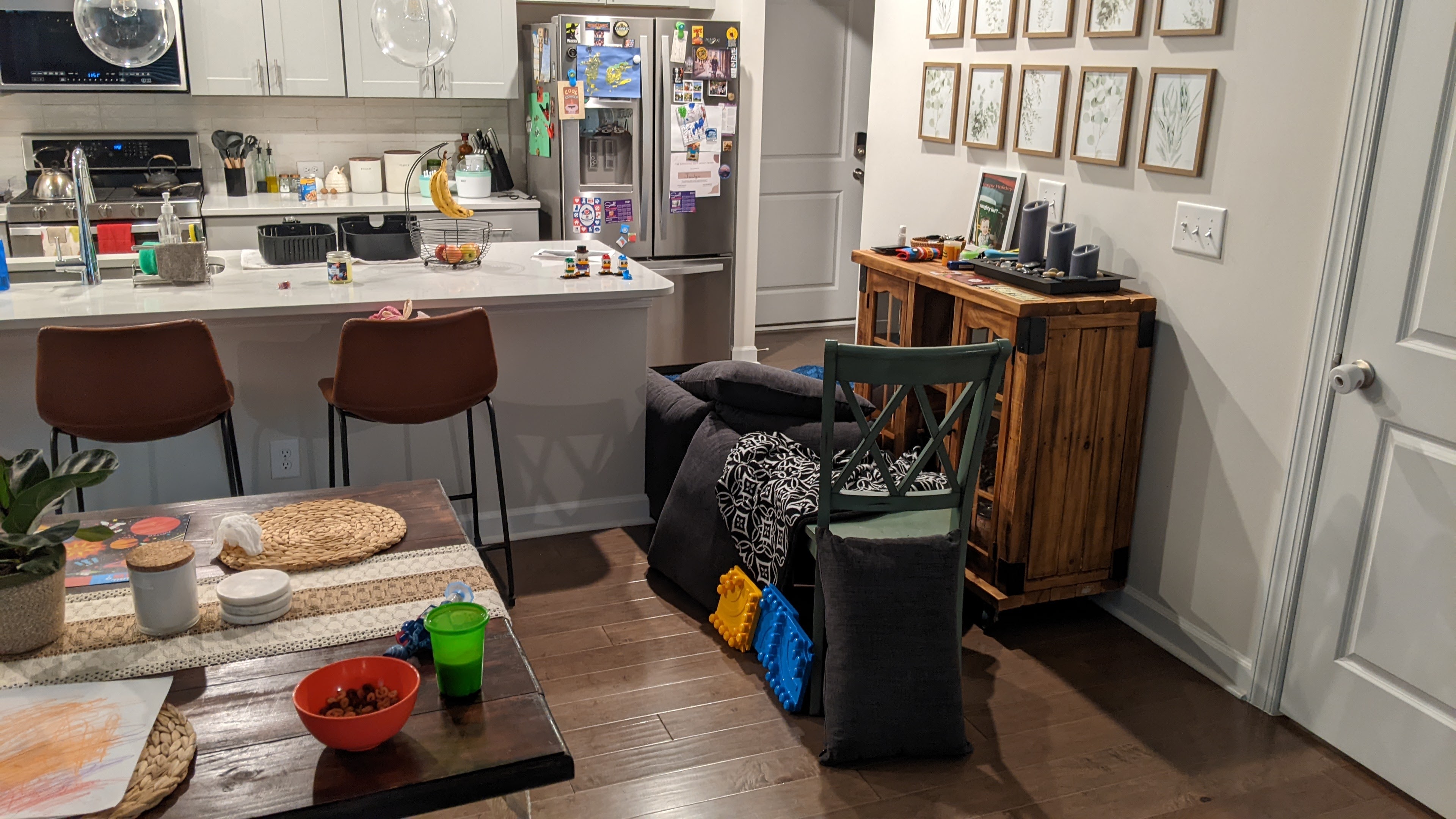 Bad news when, like me, all you want is a drink from the fridge. When is this kid going back to daycare??