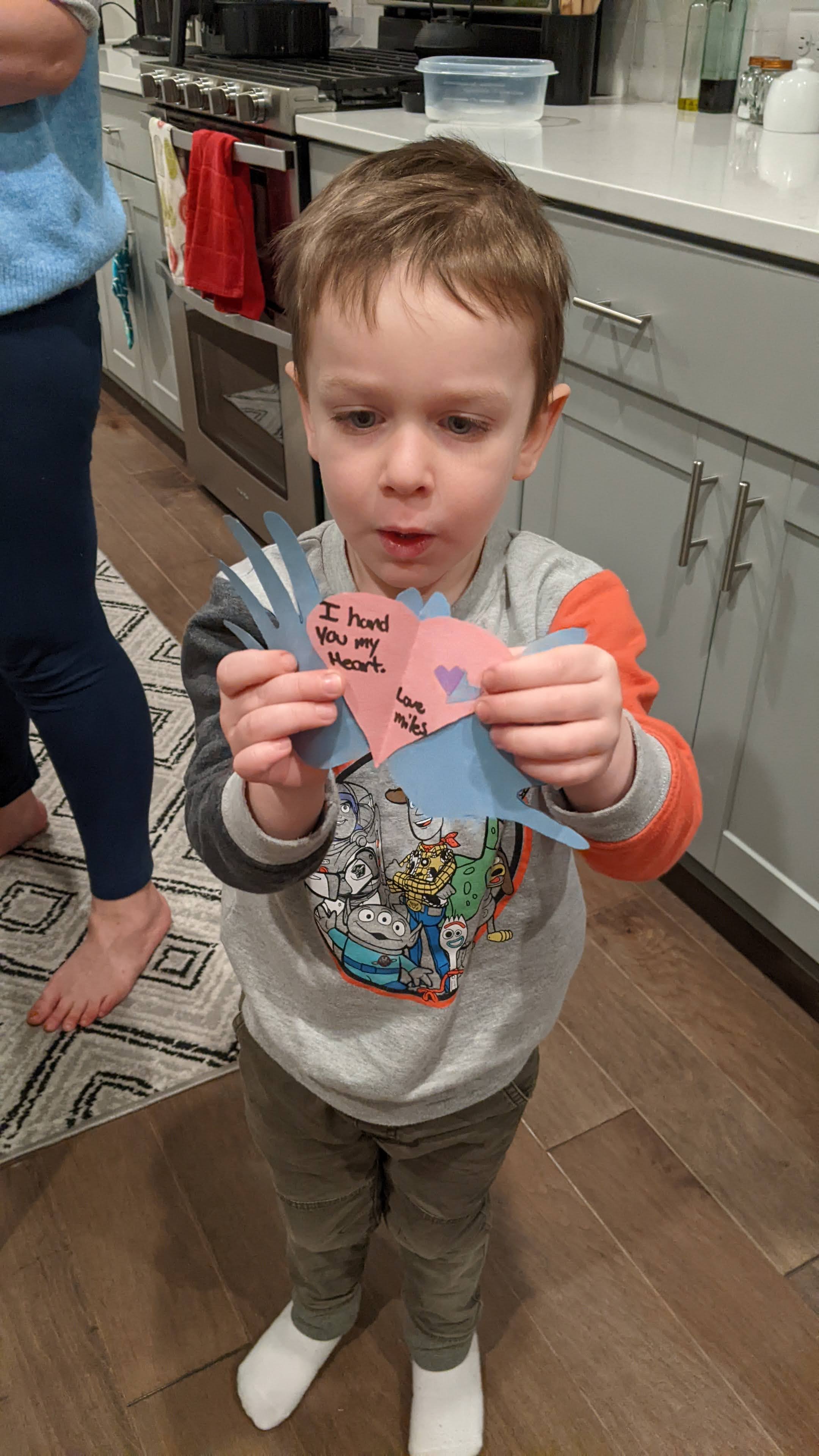 Today was Valentine’s Day, and Miles came home with a special message for us.