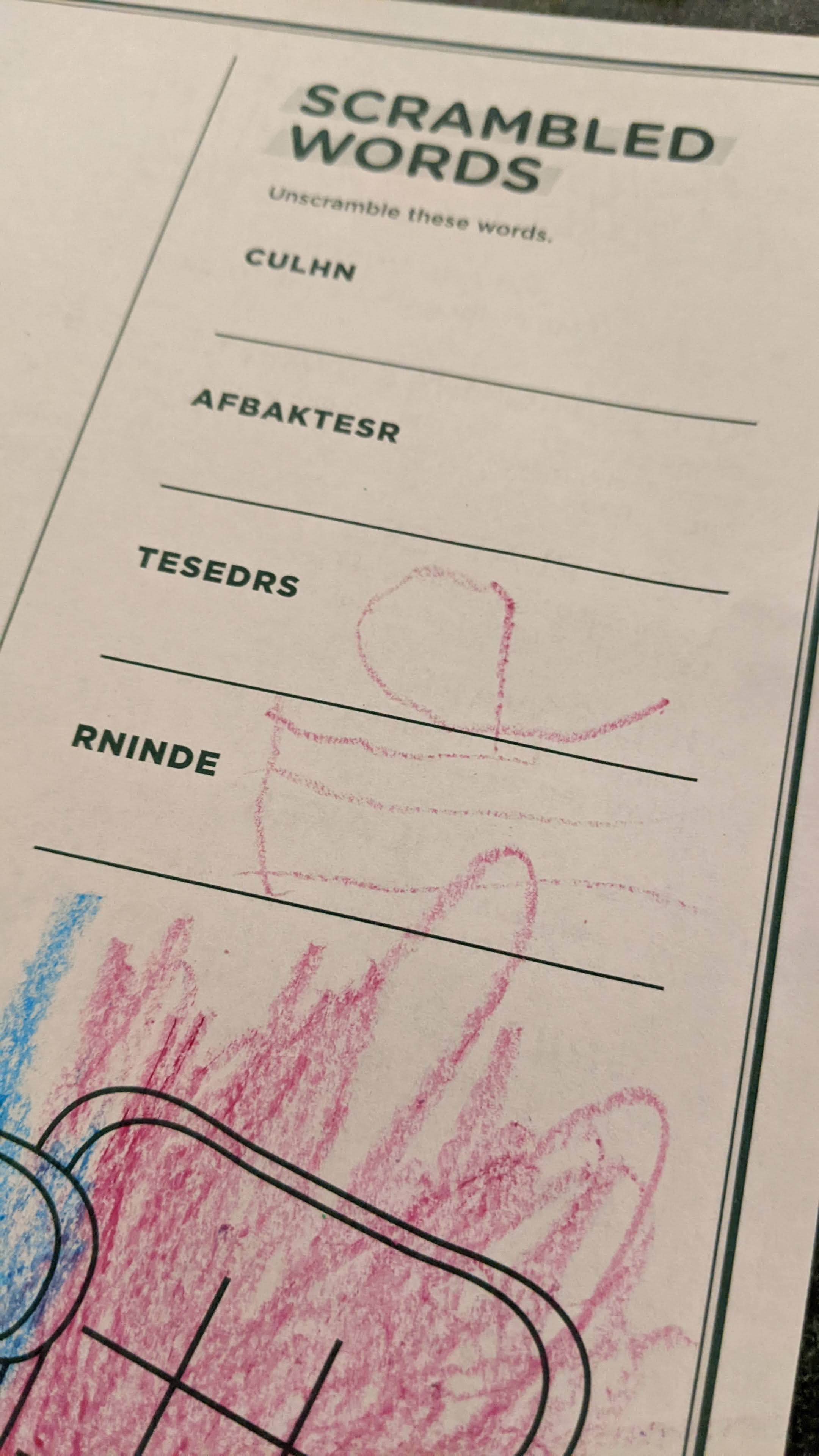But the best Valentine’s gift received tonight? Miles wrote an upper- and lower-case ‘e’ on his placemat: