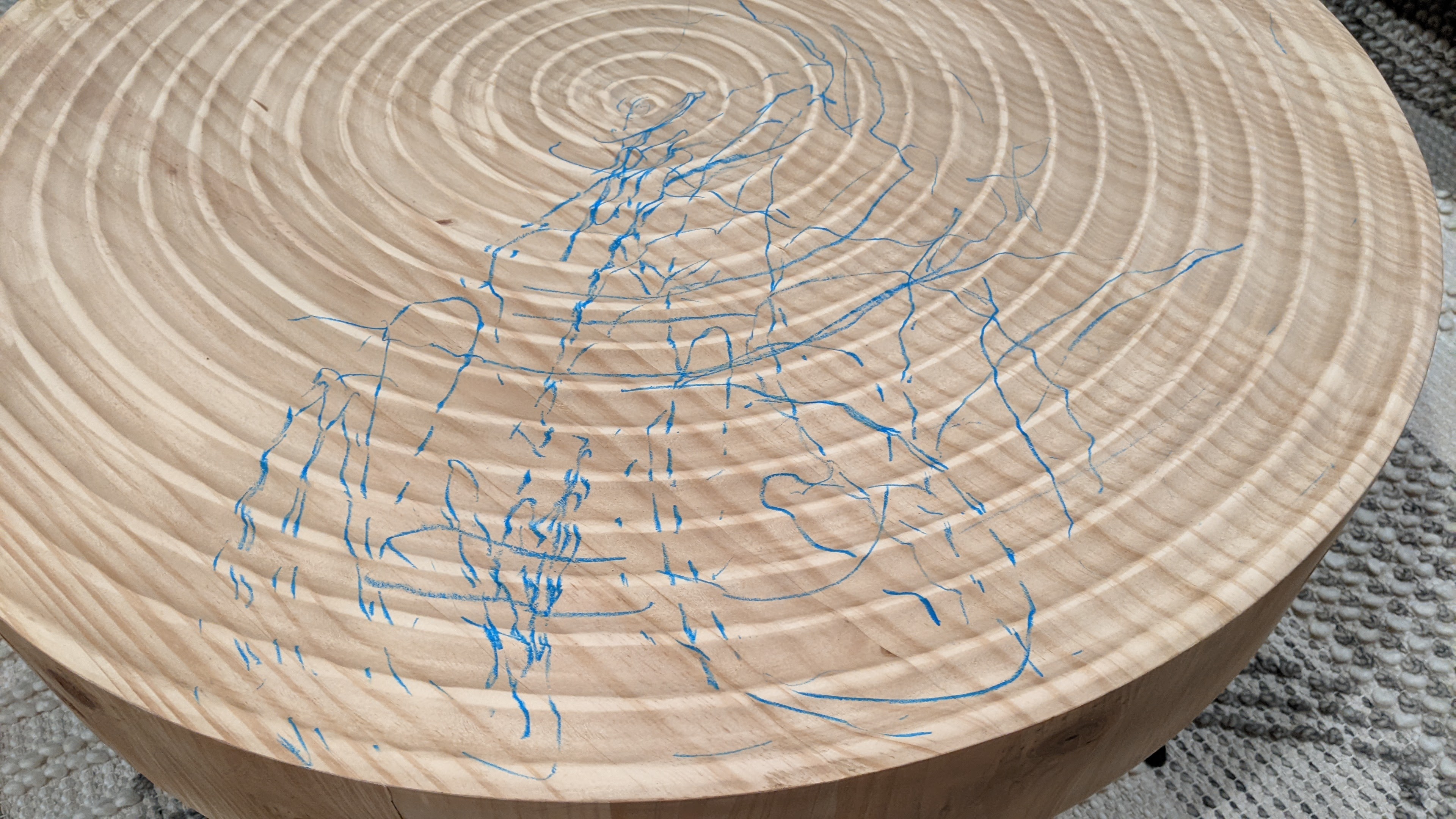 As far as I can recall, this was the first time Miles had taken a crayon to anything other than a sheet of paper or his drawing table, and not only were we unprepared for what we found on the coffee table, Miles was unprepared for our reaction. I honestly think he expected us to say something like, “Oh, wow, Miles! What a great drawing!” You can probably imagine how our actual response…differed slightly.