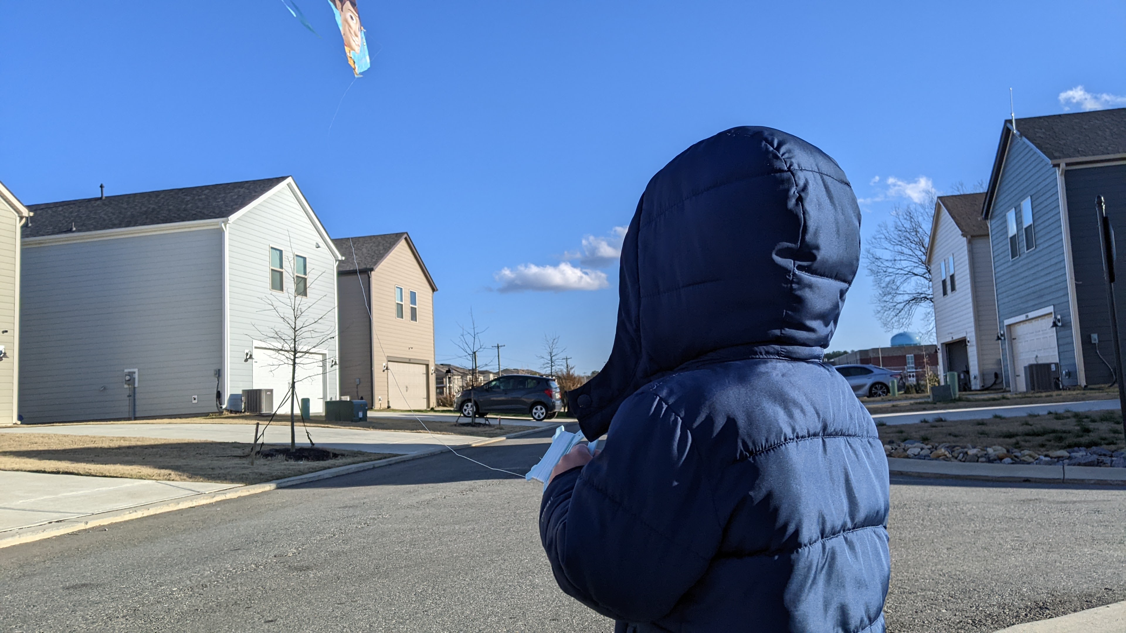Despite having seen/read enough Peanuts cartoons over the years to know how this was going to turn out, I assembled Miles’s entry-level (read: extremely cheap) Woody kite. He was thrilled at the prospect of sending his kite soaring into the sky…at least until we got to the park which, largely clear of both trees and houses, sent the wind pounding into us.