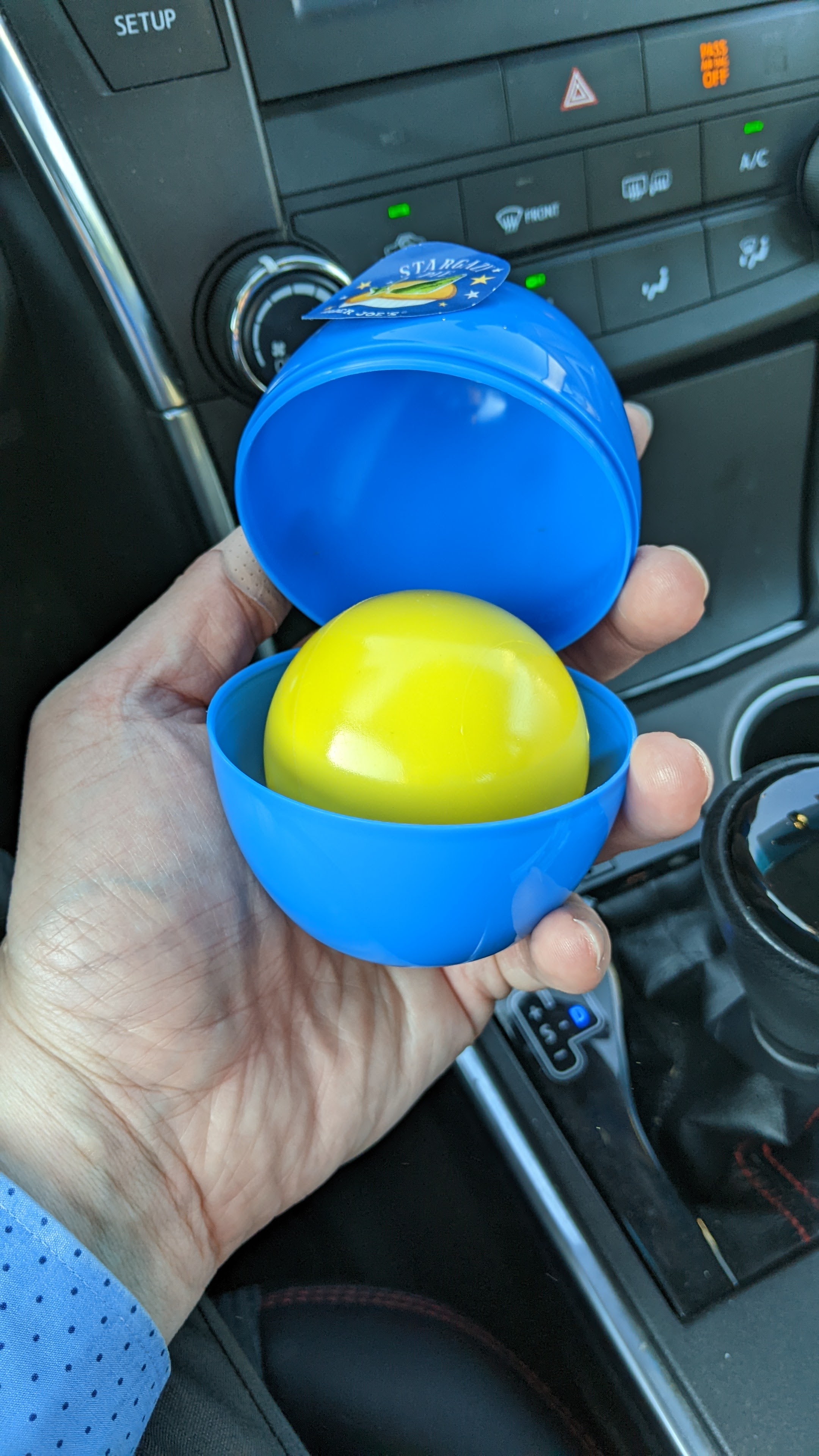 Housed within this plastic egg, it was not to be opened until I was at work.