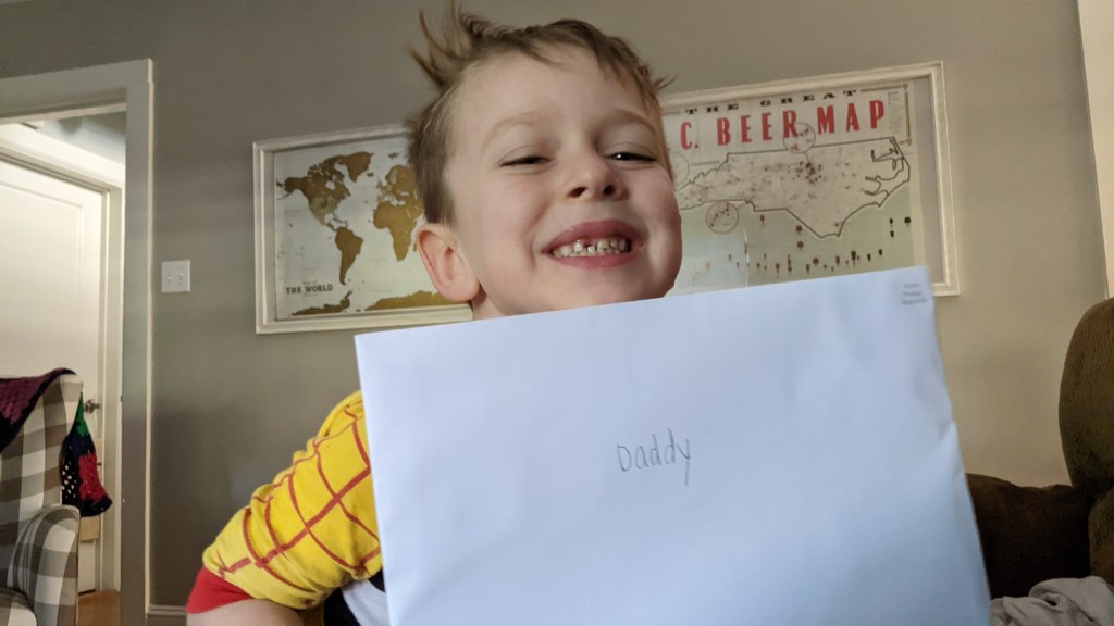 Today was Father’s Day, and I awoke to a Miles who was very eager to give me the card he personally selected.