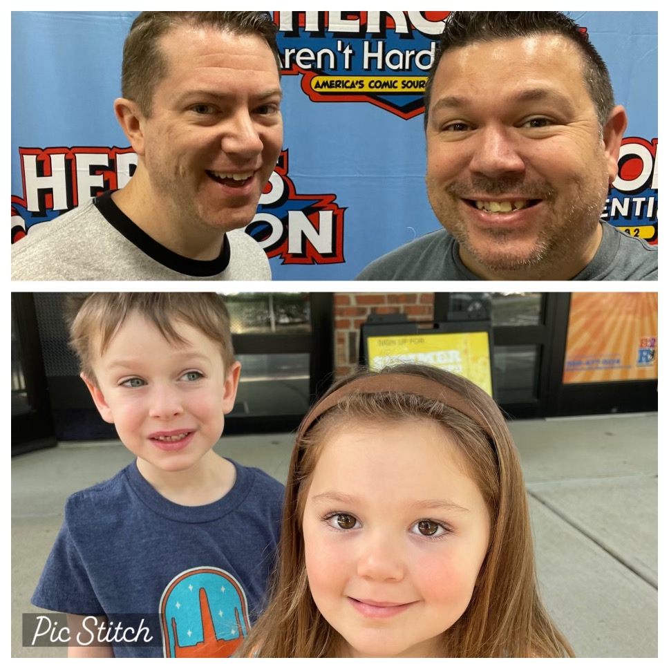 George has maintained a HeroesCon tradition since our kids were born, getting a first-day picture of us as well as a shot of Audrey and Miles to accompany it, just to make sure the crushing passage of time is abundantly clear.