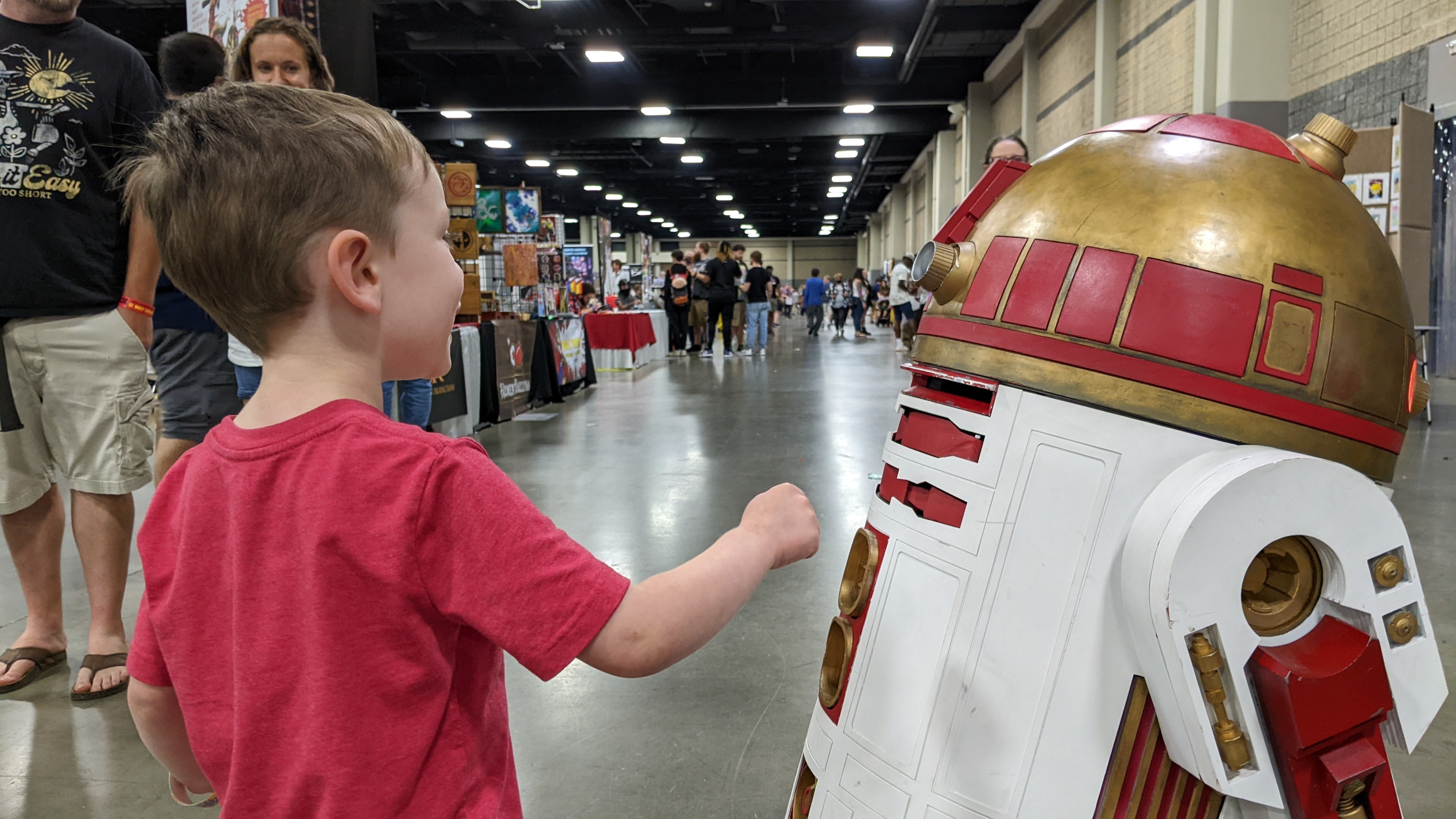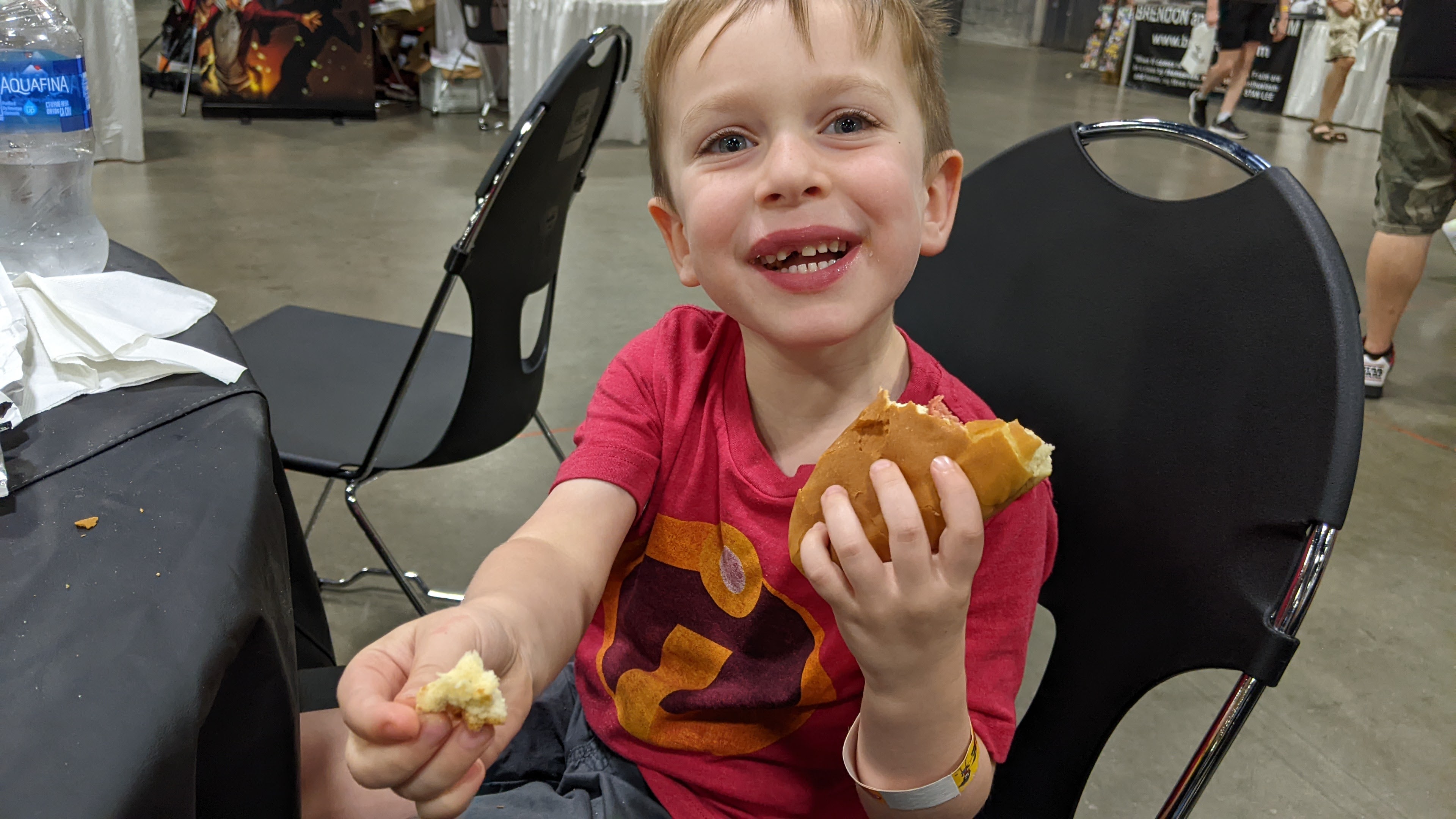 Having accomplished most of what I set out to do this weekend (and spent about as much money as I possibly could) by COB yesterday, today’s final day of HeroesCon 2022 was wide open to be completely focused on one thing — making it an experience that catered completely to Miles.