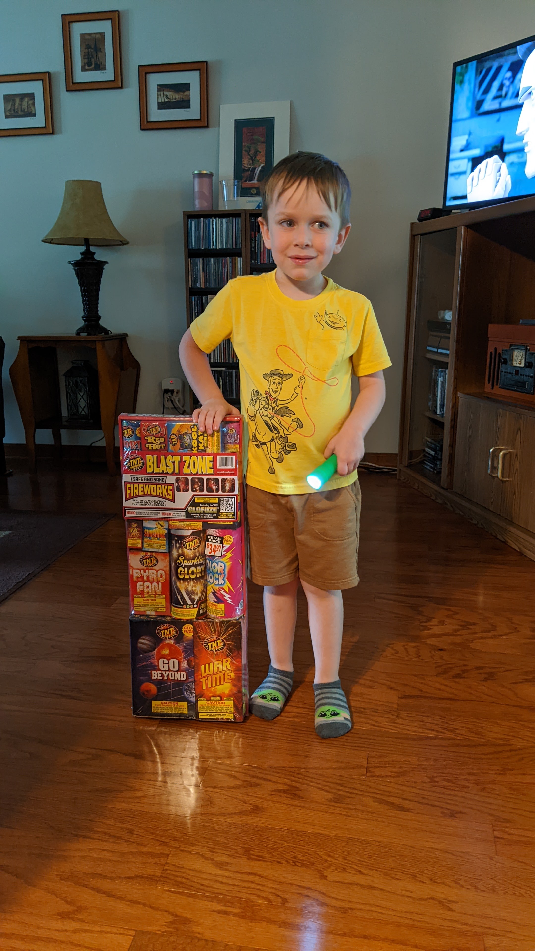 Little did he know that Grammy had picked up some fireworks just for him to set off this weekend.