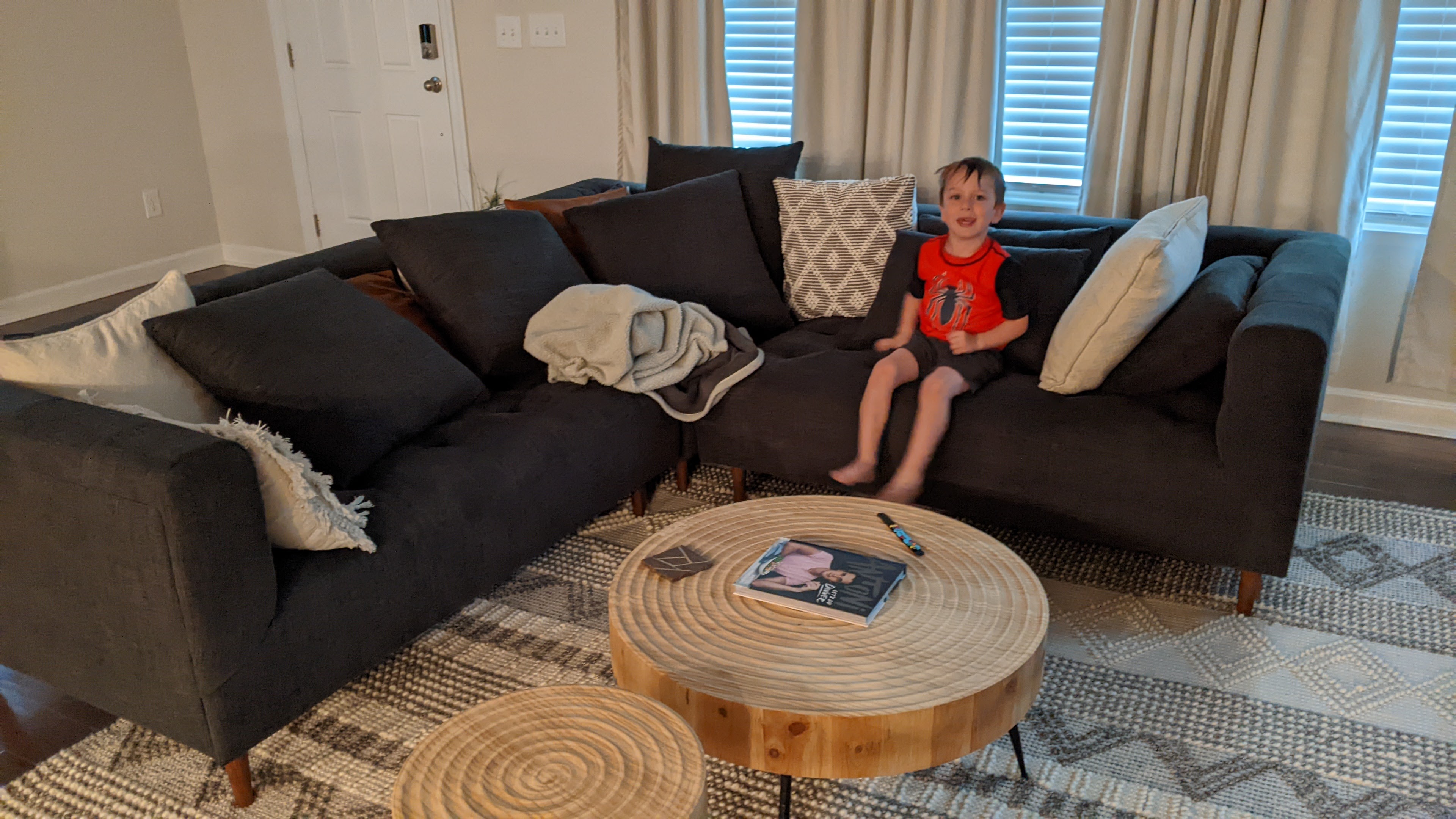 To my surprise, Miles called upstairs just a few minutes later declaring he had restored the couch to its former state. I came downstairs to find that…eh, well, he tried at least.
