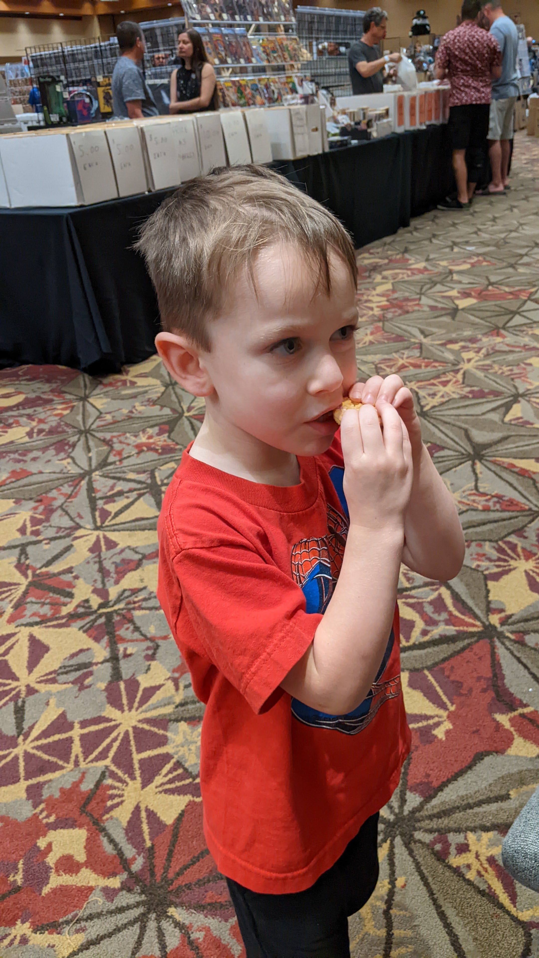 Miles and I killed a couple hours at the Charlotte Comicon today while we waited for Jaclyn to return from her retreat, and while I was there to rummage through some long boxes, Miles quickly demonstrated that he was only interested in two things. First, acquiring a balloon sword.