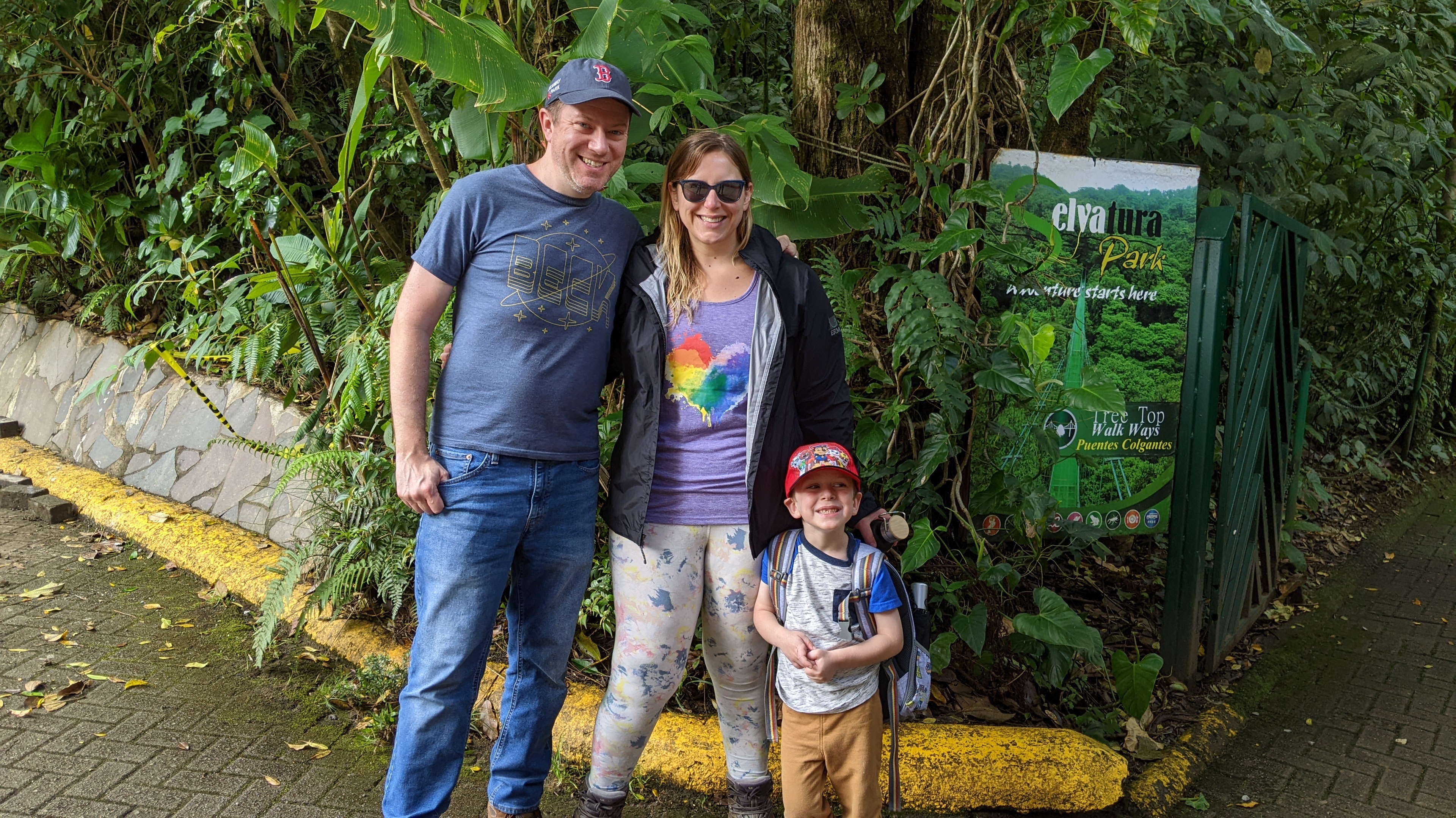 Today’s excursion took us to Selvatura Park, where we had the modest goal of walking a well-defined trail through the jungle and traversing a series of suspension bridges. Our adventure began as you might expect — in the bathroom, where this happened: