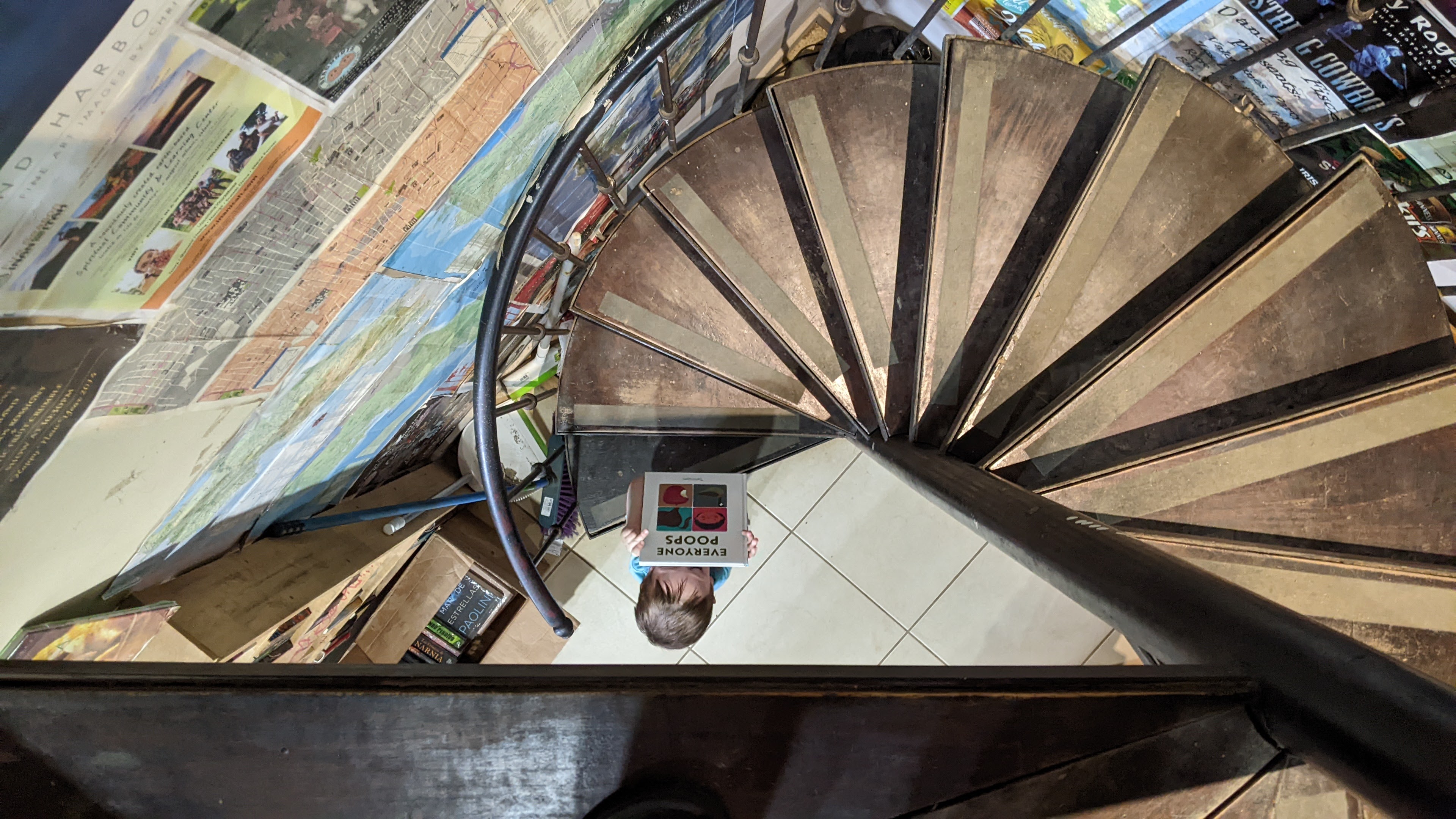 Of course, he didn’t get everything he wanted on this trip. After spending the morning at the beach, we went by a bookstore to pick up some stamps for postcards. Miles, naturally, wanted everything in the store, but none of his requests were quite so understandable as the one below. While I was checking out some books upstairs, Miles called up to me and said, “I WANT THIS!” I looked down the staircase to see this: