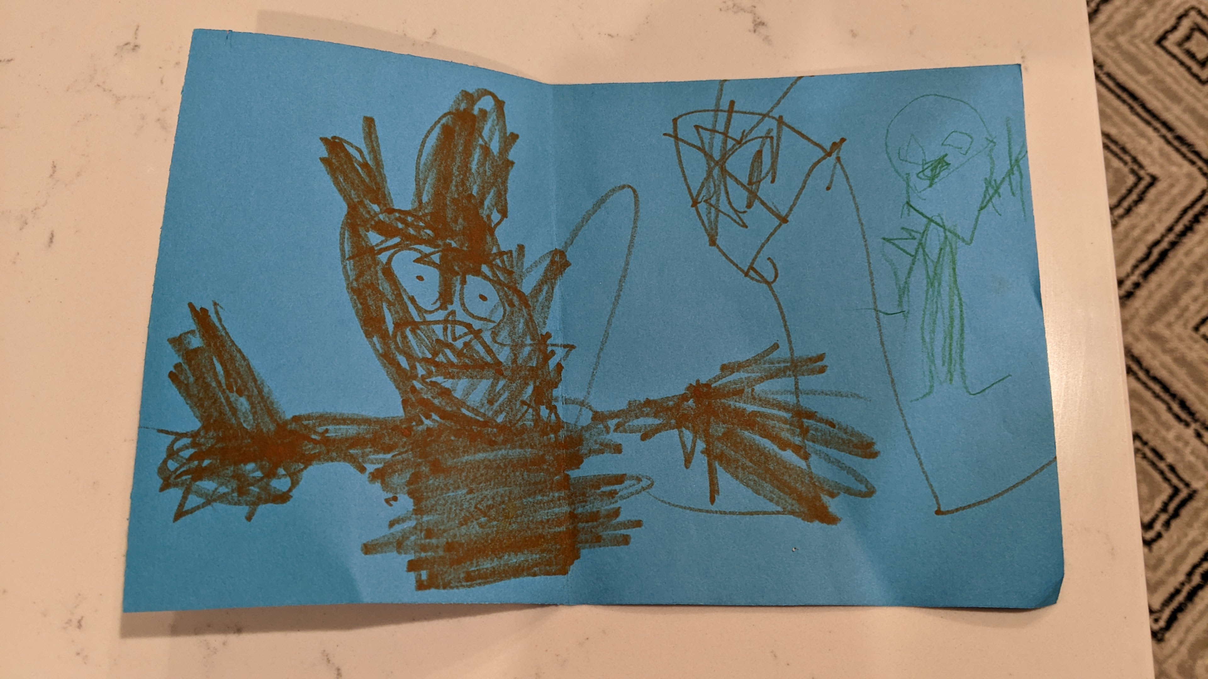 “Look at this card I made for Papa!” Miles said this morning, in yet another one of his attempts to delay leaving for school. And he knew it would work, because I’m always interested in seeing how is artistic ability is developing.