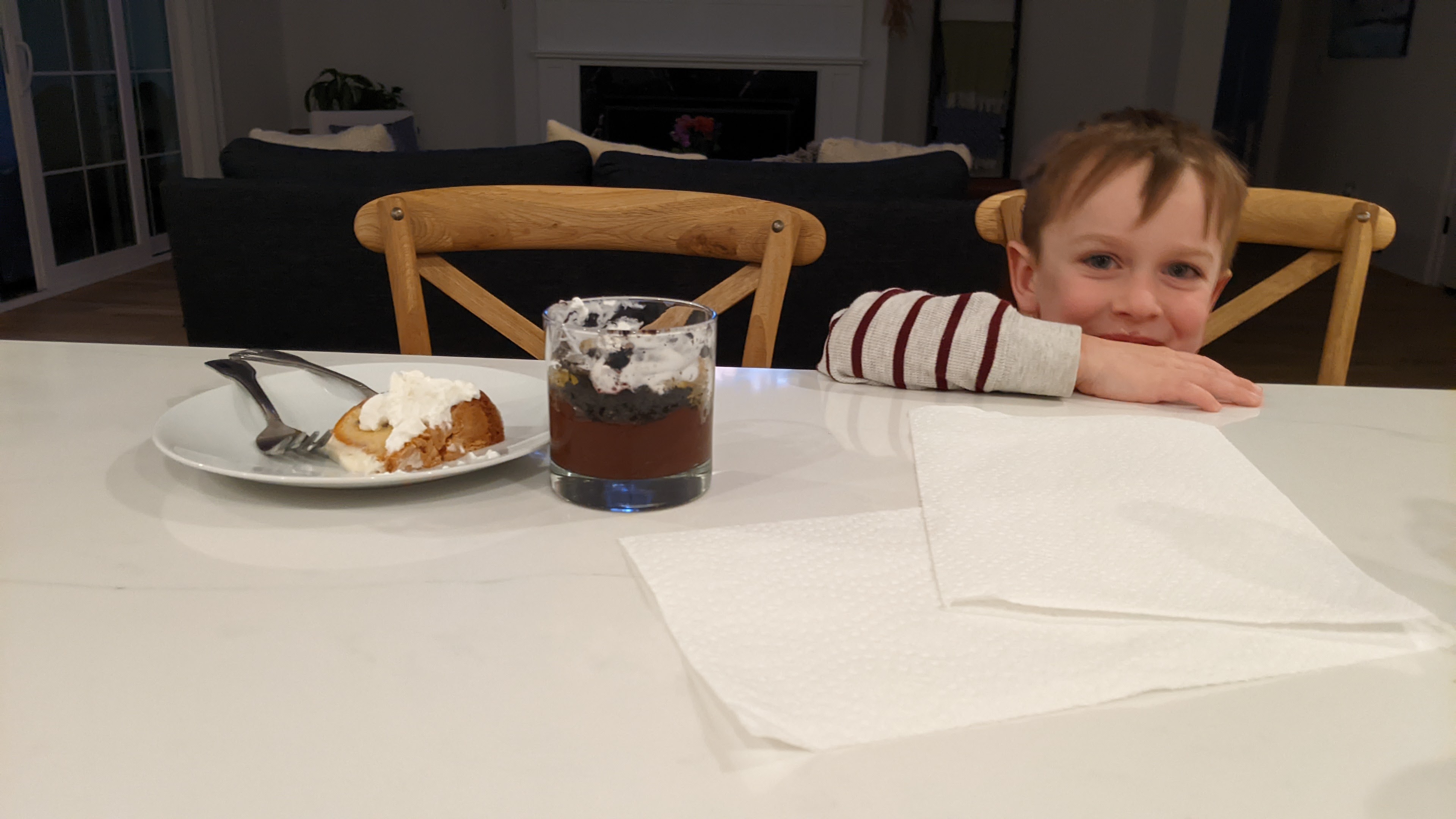 As for dinner, when my brother-in-law Scott says he’s cooking, you best believe I’ll be there with an appetite. Miles, too, did a decent job of eating his food, although it comes as no surprise he had a singular interest in the dessert options.