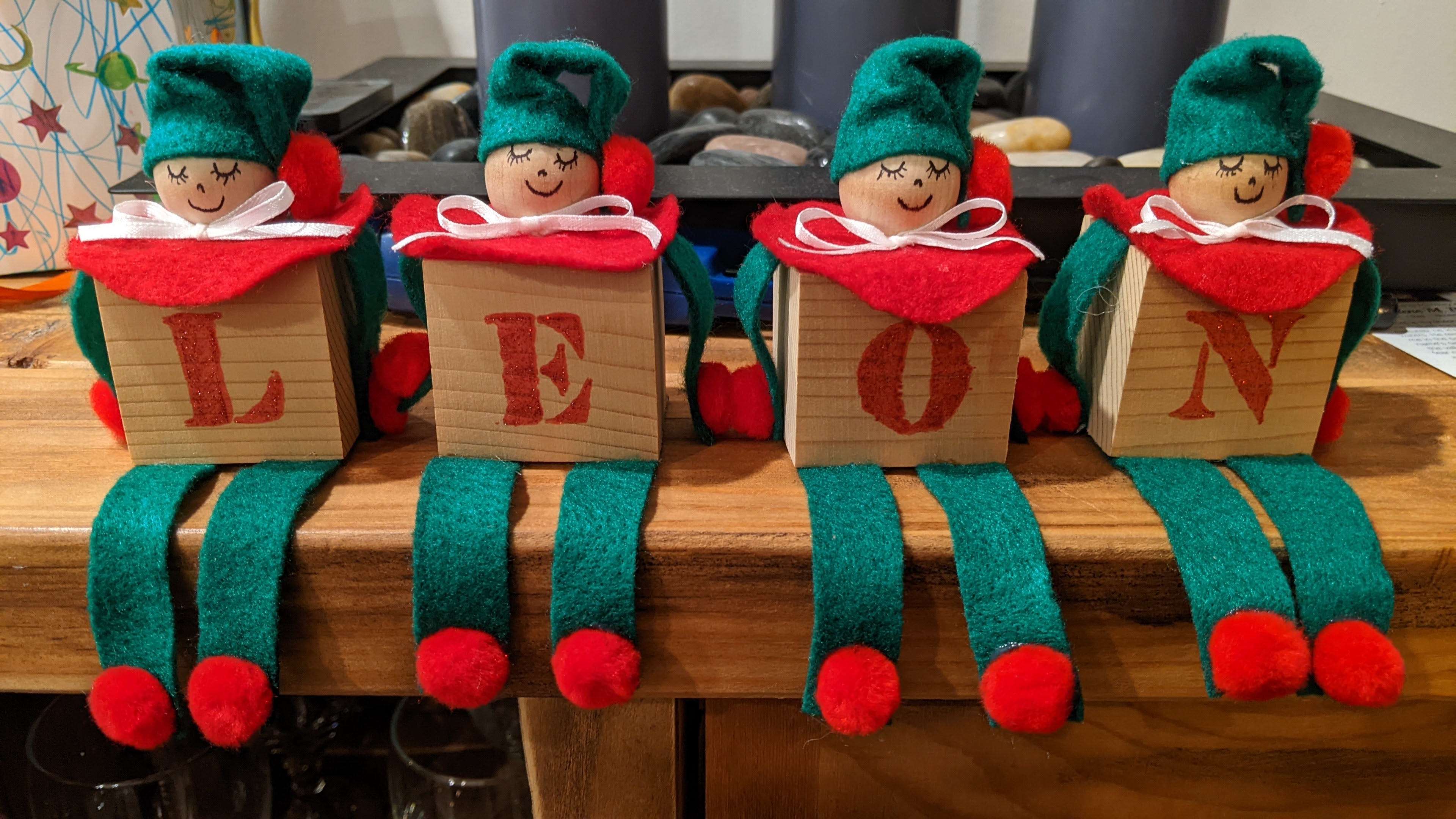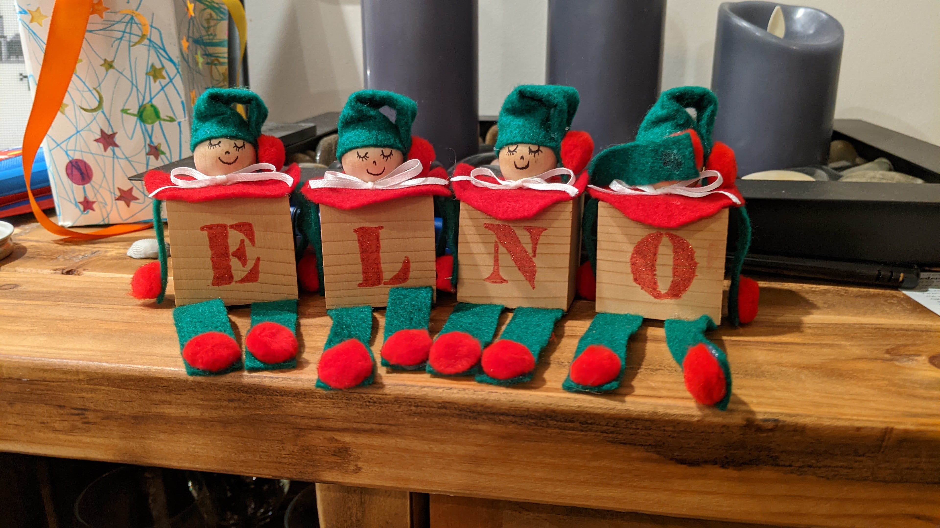 At some point, maybe around 1993*, my mother came into possession of Christmas elf blocks like those pictured above. Every year she would arrange them to say, as was almost surely the original intention, “NOEL.” And every time I walked past them, I would rearrange them to say, “LEON.” We would go back and forth like this throughout the holidays, a silent war fought between two family members.