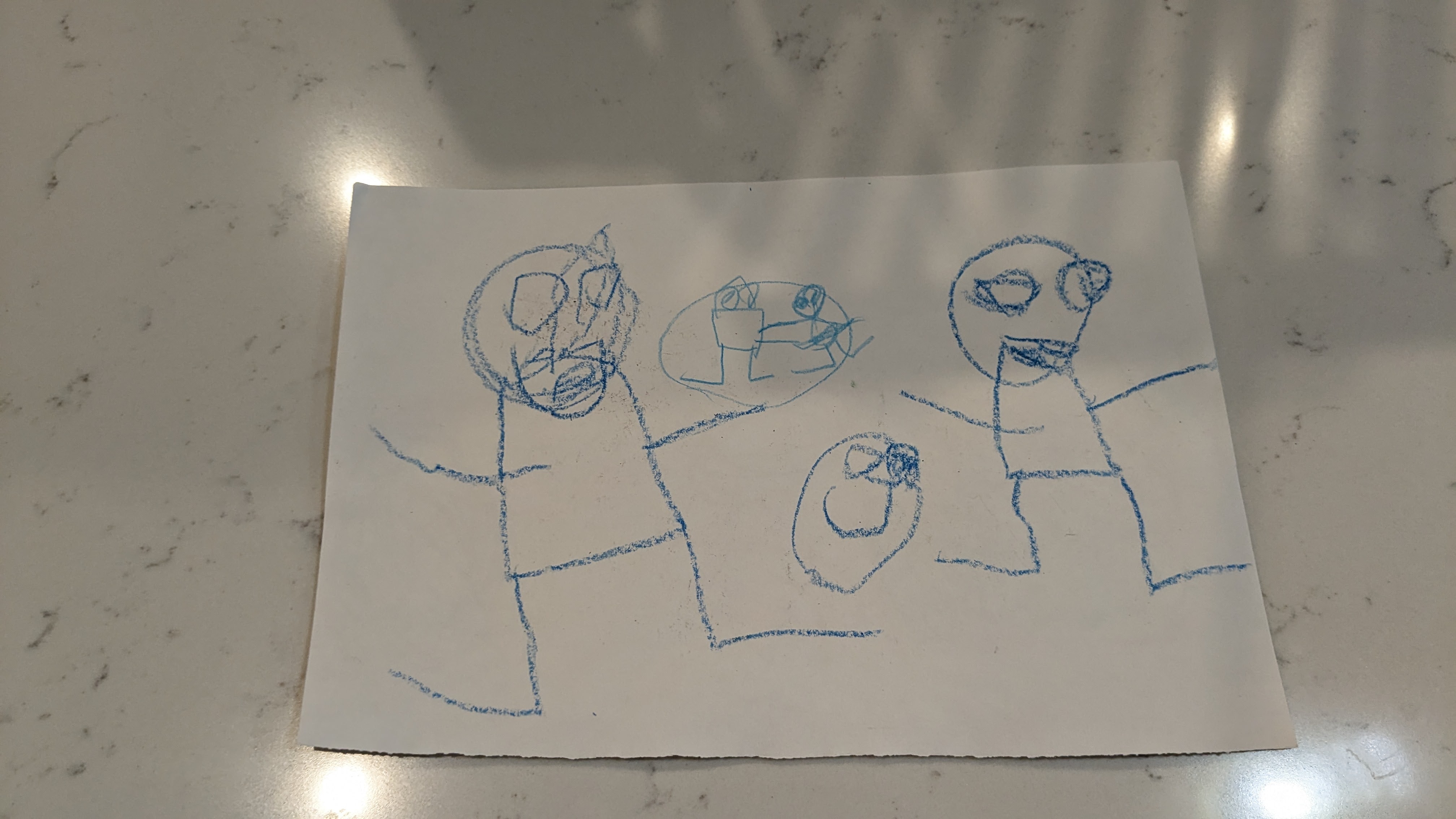 Shuffling through the bundle of papers he brought home from school, Miles excitedly showed Jaclyn and I a picture he had drawn. “Look!” he said, pointing as he explained (mostly to Jaclyn). “That’s you and that’s Daddy and that’s a smiley face and that’s from when you got married!”