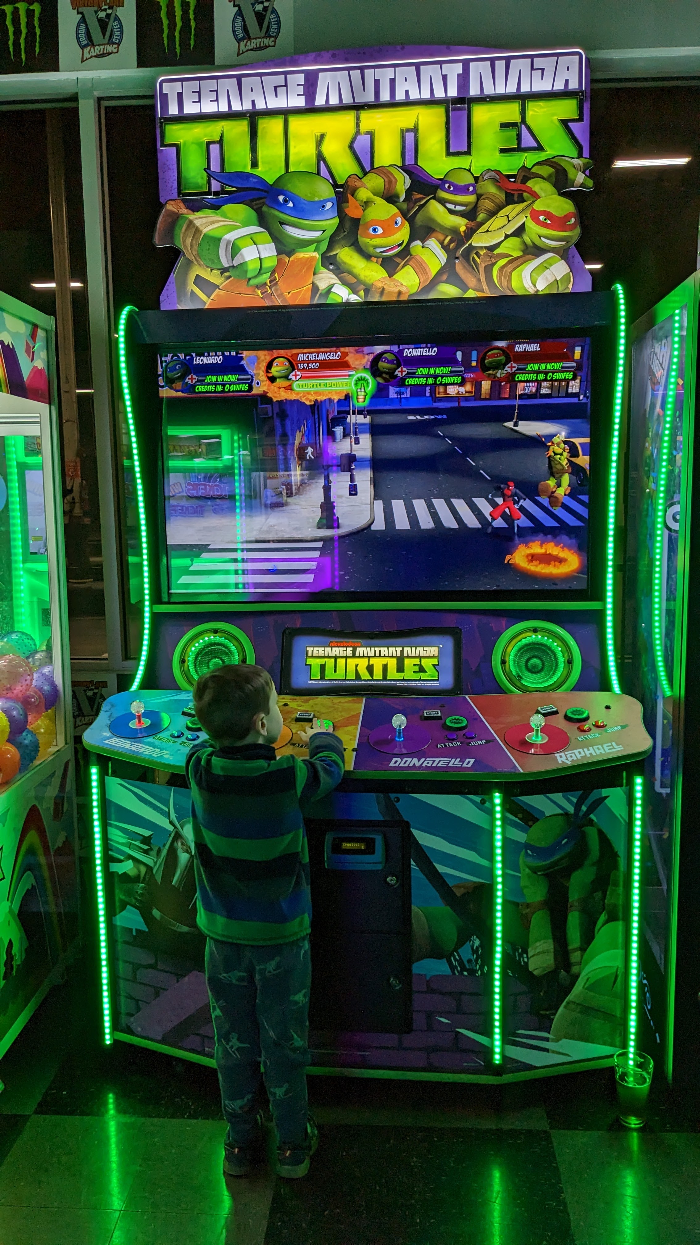 Thankfully, he was perfectly content as a spectator. Of course, the fact that there was an arcade there full of things he could engage with probably didn’t hurt.